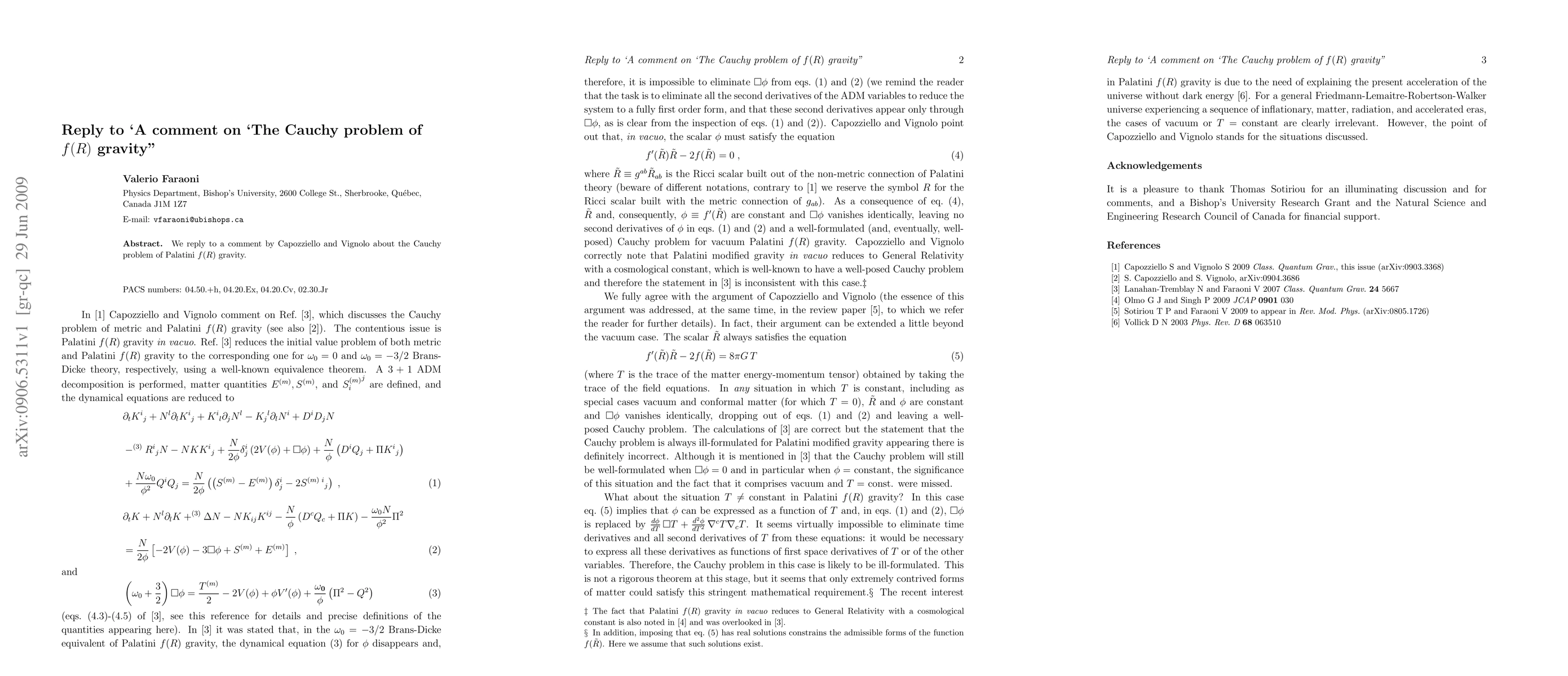 Researchers address a comment on the Cauchy problem of Palatini f(R) gravity, providing insight into this complex theoretical framework in cosmology.