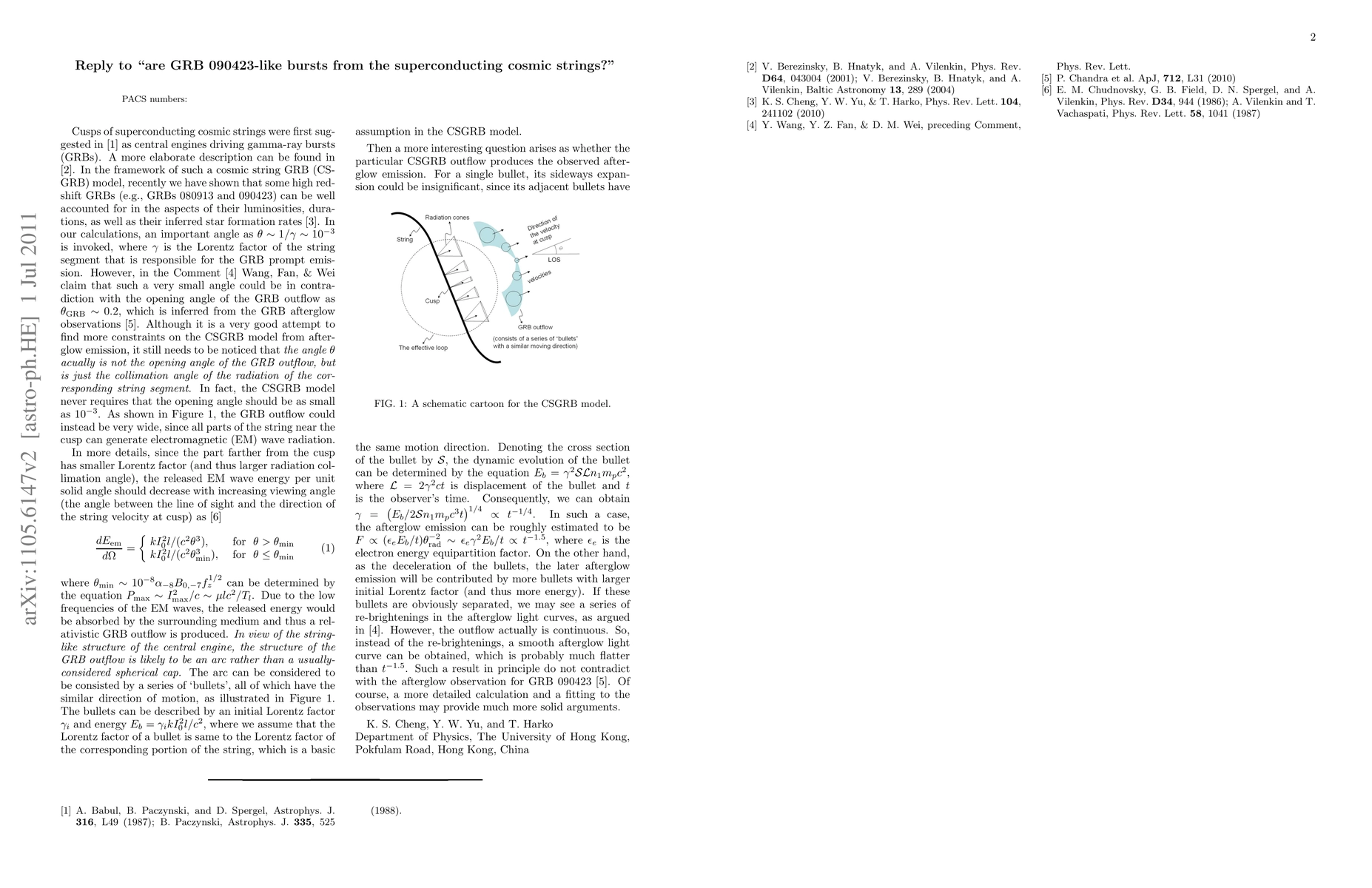 The GRB outflow driven by superconducting cosmic strings is likely to be an arc rather than a usually-considered spherical cap. In such a case, the afterglows of the cosmic string GRBs could be basically consistent with the observation of the high-redshift GRBs.