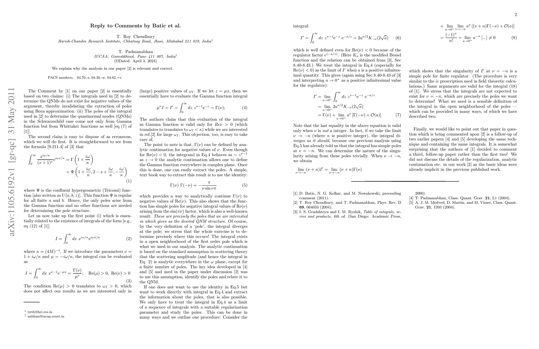 We explain why the analysis in our paper [Phys. Rev. D 69, 064033 (2004), arXiv:gr-qc/0311064 ] is relevant and correct.