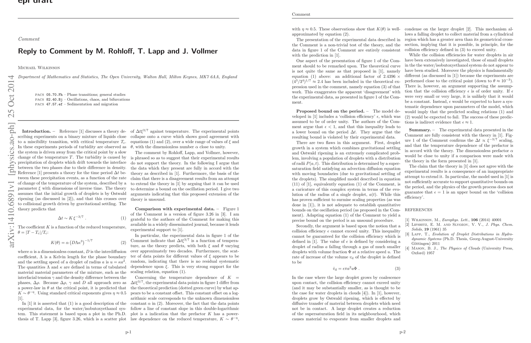 This paper addresses and responds to a critique by M. Rohloff, T. Lapp, and J. Vollmer regarding the original 'test-tube model for rainfall' study, aiming to clarify and defend the methodology and conclusions of the initial research. The authors provide additional insights and data to support their model.
