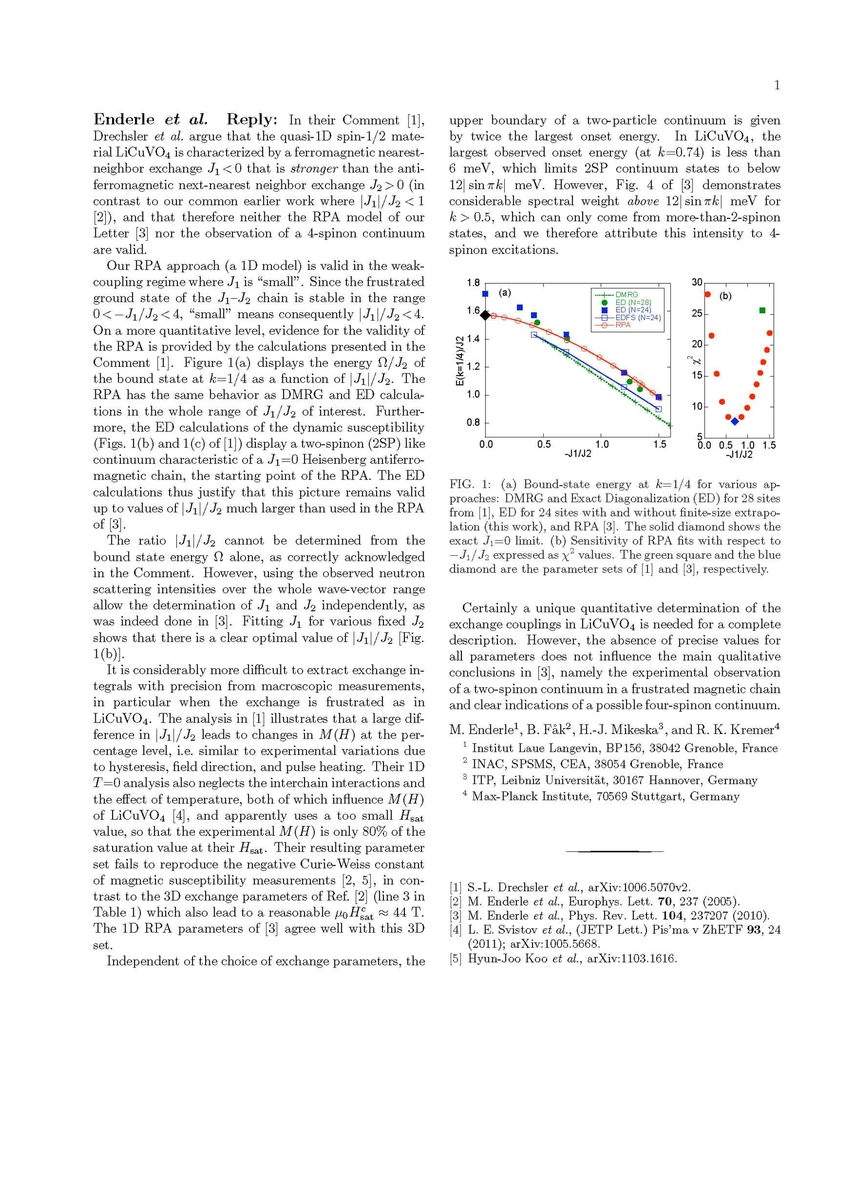This paper refutes Drechsler et al.'s claim that LiCuVO4 should be described by strong ferromagnetic interactions, arguing that their parameters conflict with experimental data on magnetic susceptibility and excitations. It concludes that their new exact diagonalization results support the weak interaction model and the existence of a four-spinon continuum.