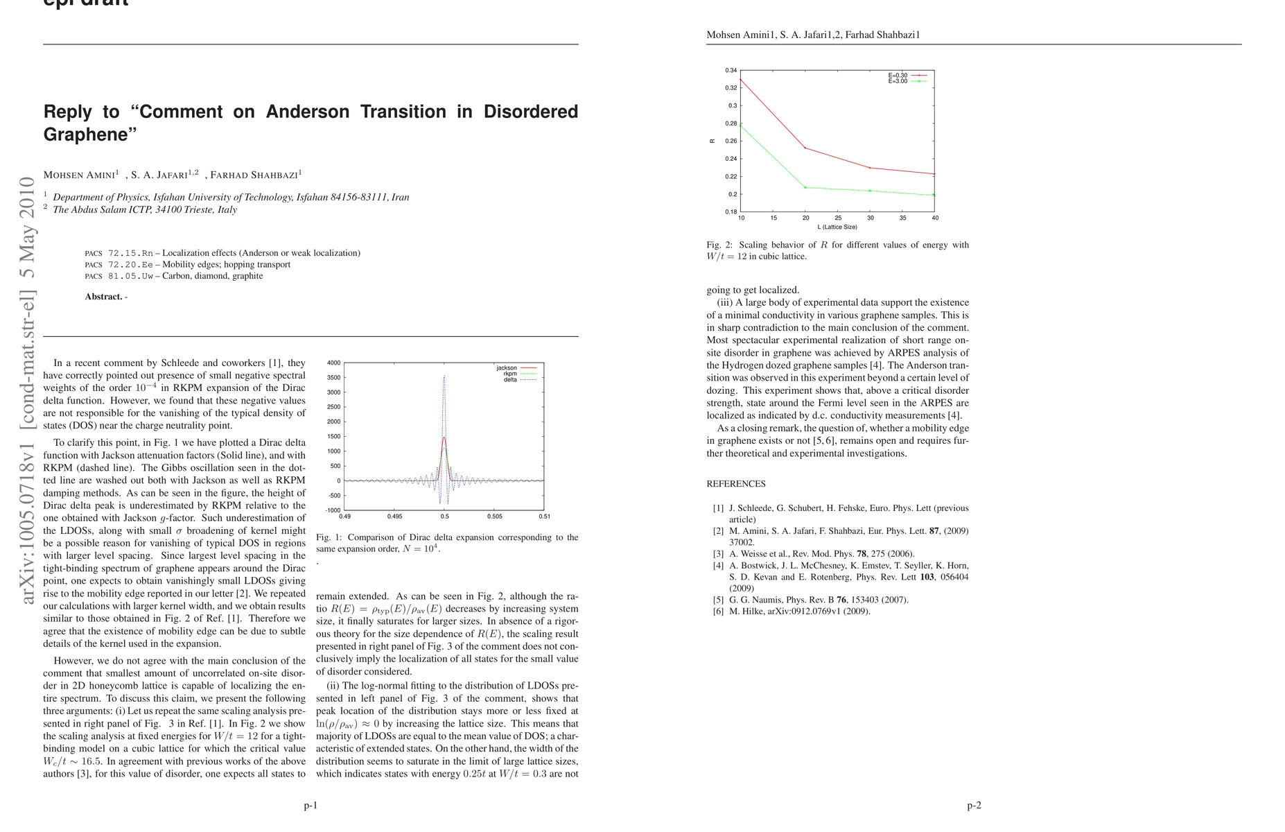 We show that the very small numeric effects discussed in the comment by Schleede et al (arXiv:1005.0497) is not the source of mobility edge predicted in graphene in our letter [Eur. Phys. Lett., 87 (2009) 37002].