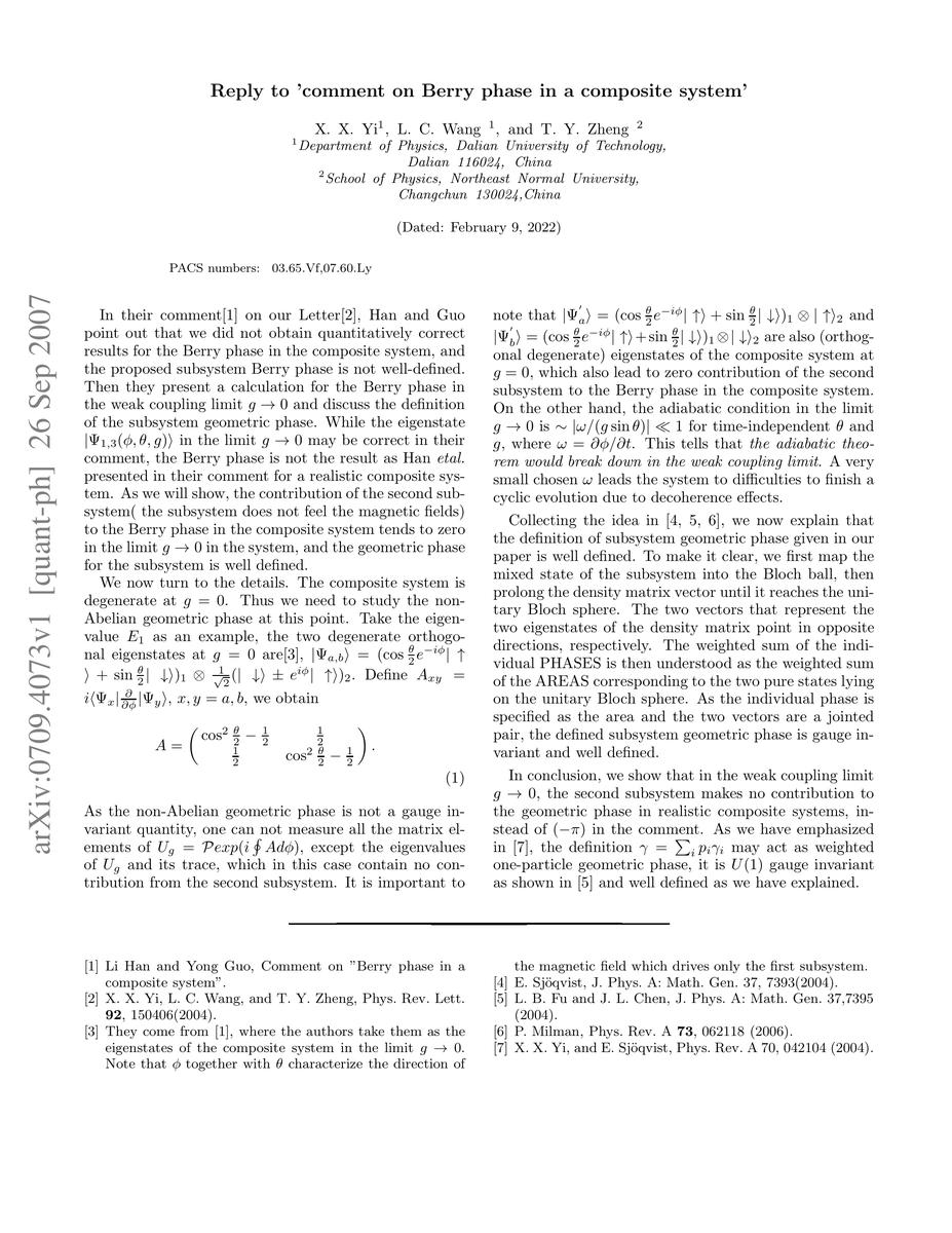 In this reply, we show that the adiabatic theorem would break down in the weak coupling limit, and the definition for the subsystem geometric phase is well defined.
