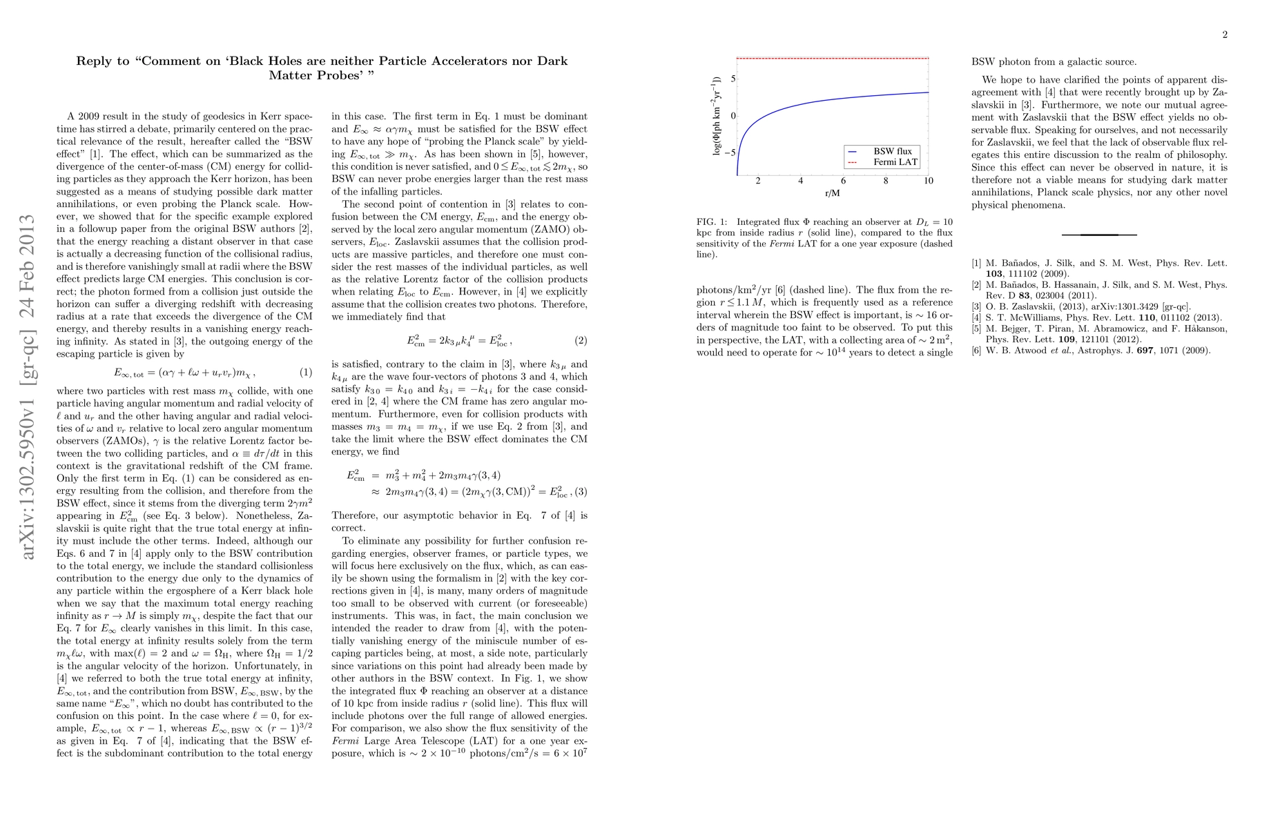We respond to a recent criticism from Zaslavskii (arXiv:1301.3429v2 [gr-qc]) of our article, which appeared in Phys. Rev. Lett. 110 011102 (2013). We clarify the points of apparent disagreement, none of which relate to the central result of our original paper, which is the demonstration that the diverging center-of-masss energy of collisions in Kerr spacetime, known as the "BSW effect", can never be observed in nature. To emphasize this result, we present it in a more concise way which completely avoids any of the questions brought up by Zaslavskii.