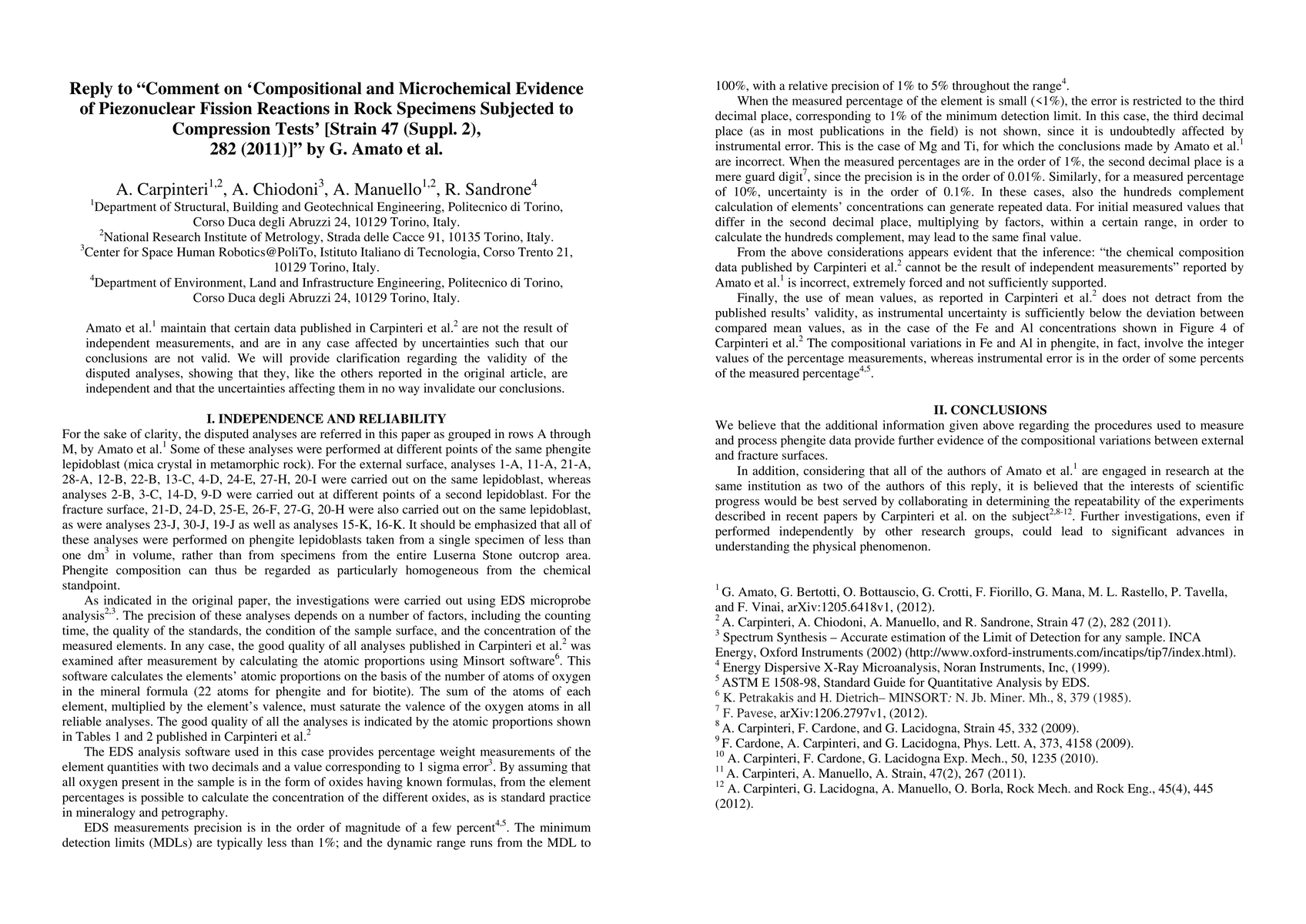 Amato et al.[arXiv:1205.6418] maintain that certain data published in Carpinteri et al.[2] are not the result of independent measurements, and are in any case affected by uncertainties such that our conclusions are not valid. We will provide clarification regarding the validity of the disputed analyses, showing that they, like the others reported in the original article, are independent and that the uncertainties affecting them in no way invalidate our conclusions.