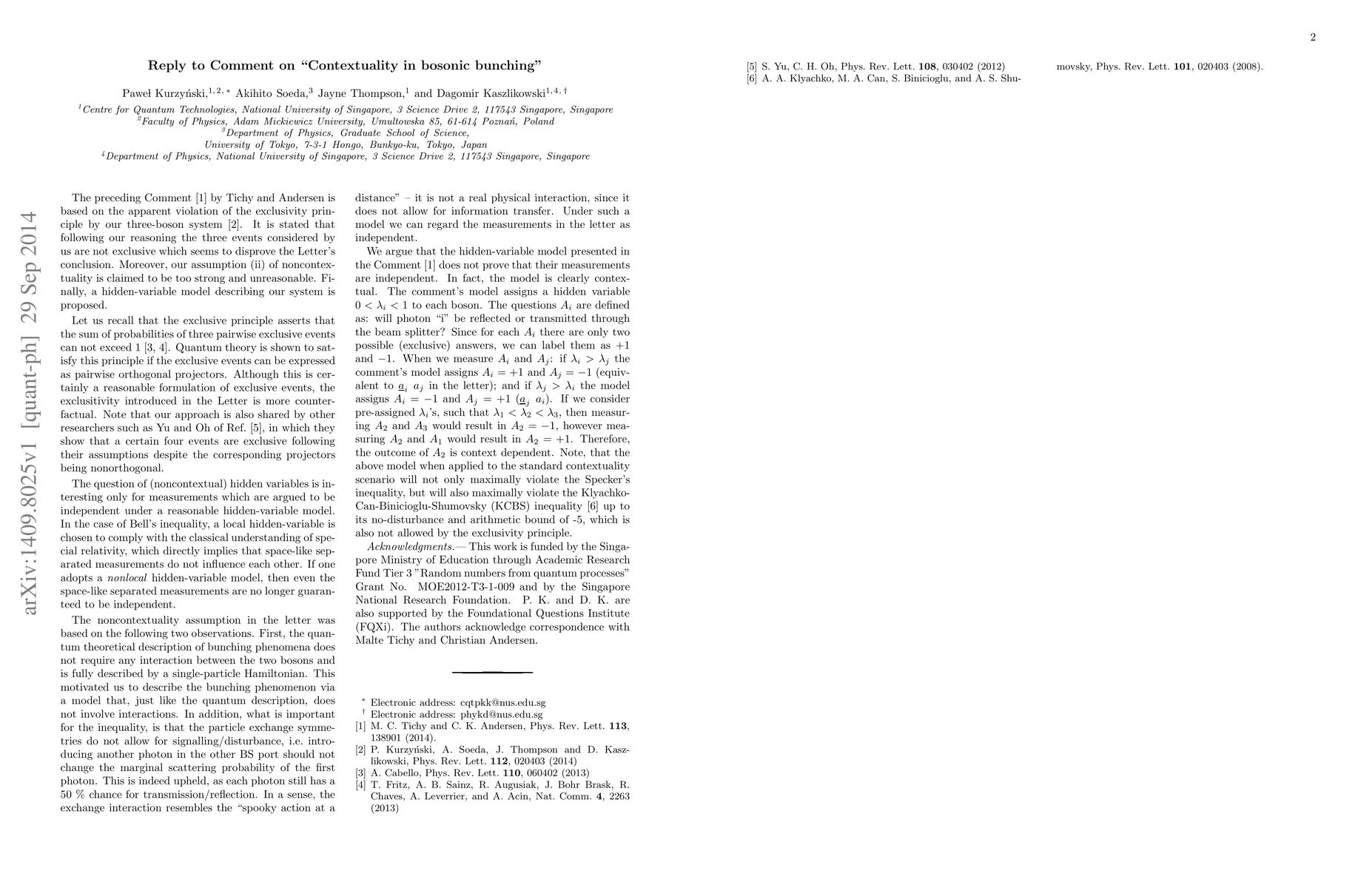 This paper addresses and responds to a comment regarding the original research on contextuality in bosonic bunching, providing clarifications and further insights into the discussed phenomena. The authors aim to resolve any confusions and strengthen the theoretical framework established in their initial work.