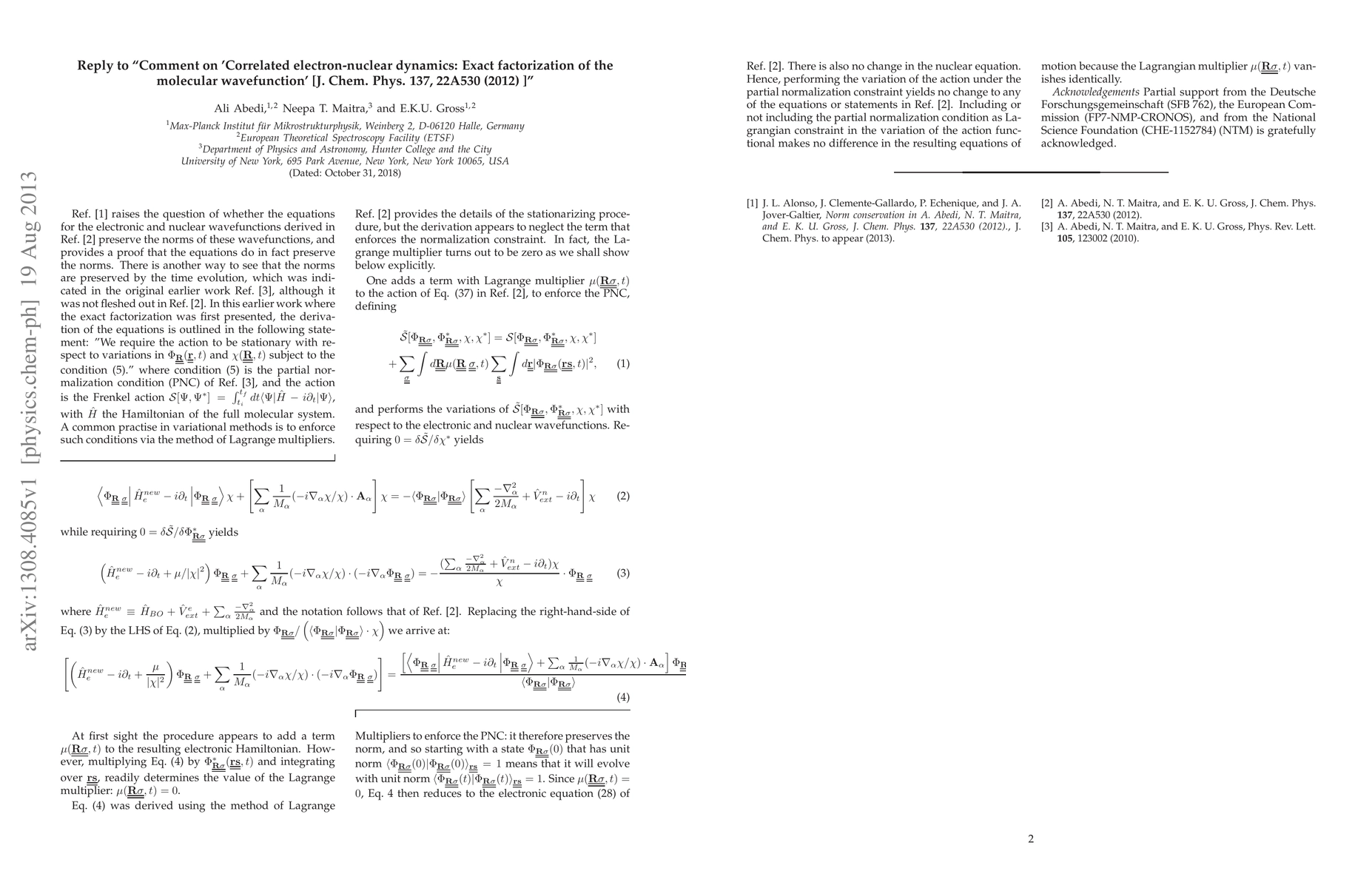 This paper addresses and responds to criticisms by J. L. Alonso et al. regarding the authors' previous work on the exact factorization of the molecular wavefunction in correlated electron-nuclear dynamics. The authors clarify and defend their methodology and conclusions.