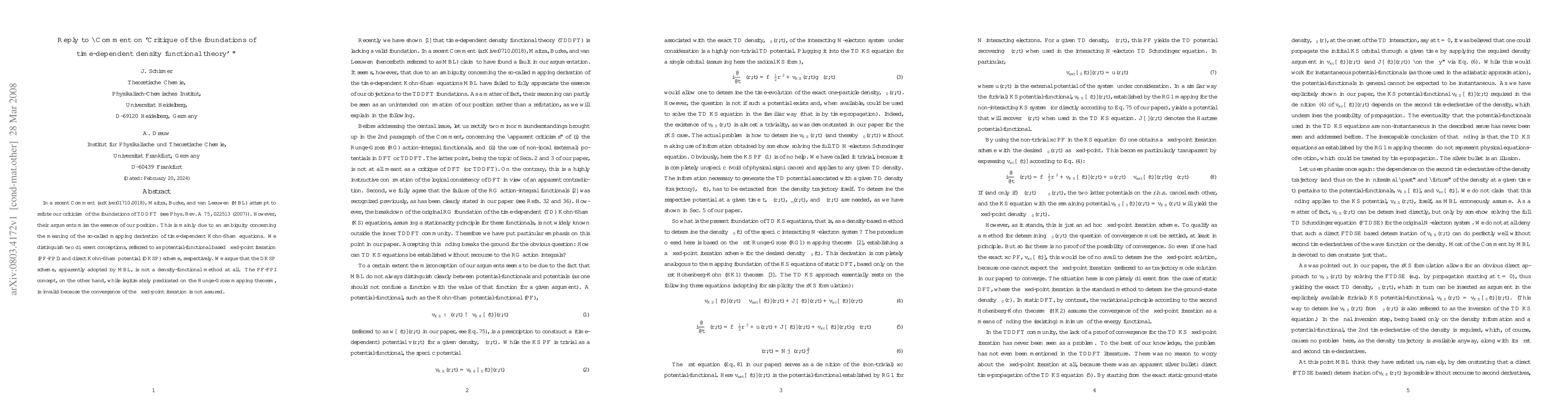 This paper refutes Maitra, Burke, and van Leeuwen's attempt to counter the critique of time-dependent density functional theory (TDDFT) foundations, arguing that their approach misunderstands the core issue due to confusion over the derivation methods of the time-dependent Kohn-Sham equations. The authors assert that the direct Kohn-Sham potential scheme is not a valid density-functional method, while the potential-functional based fixed-point iteration, though theoretically sound, lacks guaranteed convergence.