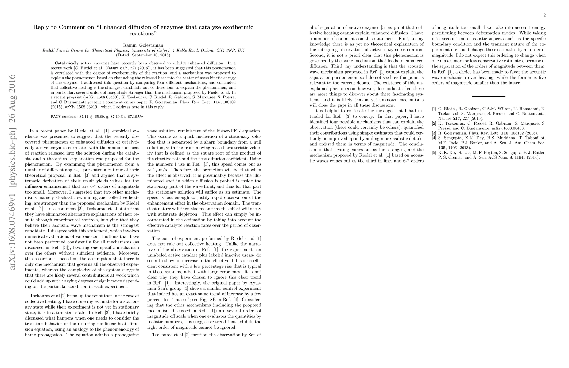The paper is a response to a comment on a previous study. The author defends their conclusion that 'collective heating' is the strongest mechanism explaining enhanced diffusion in exothermic enzyme reactions, asserting it's significantly stronger than the mechanism proposed by Riedel et al. The author also addresses the comment presented by Tsekouras et al.