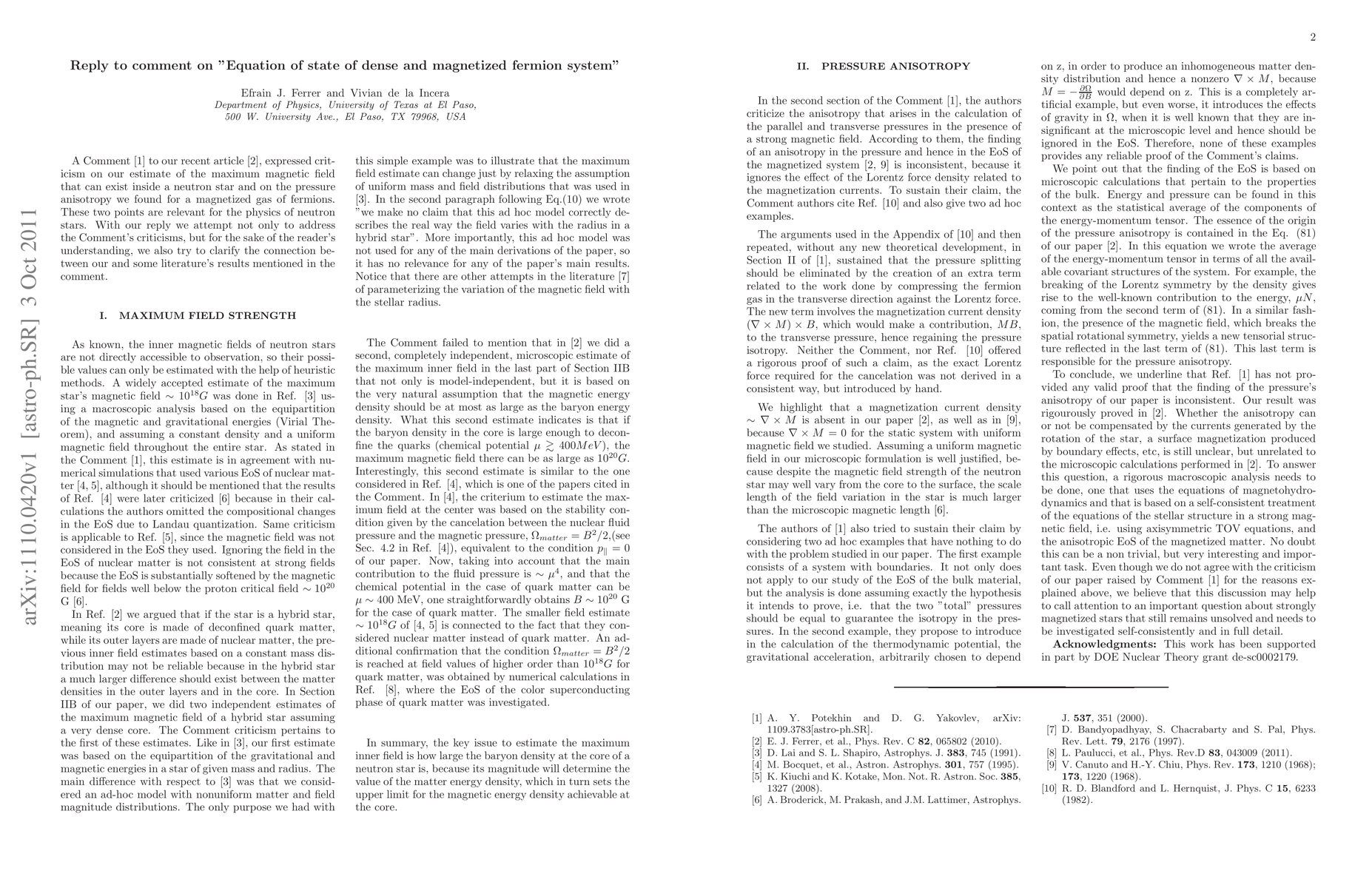 This paper responds to criticisms of a previous article regarding the maximum magnetic field in neutron stars and pressure anisotropy in a magnetized fermion gas, aiming to address the concerns and clarify connections to other relevant literature.
