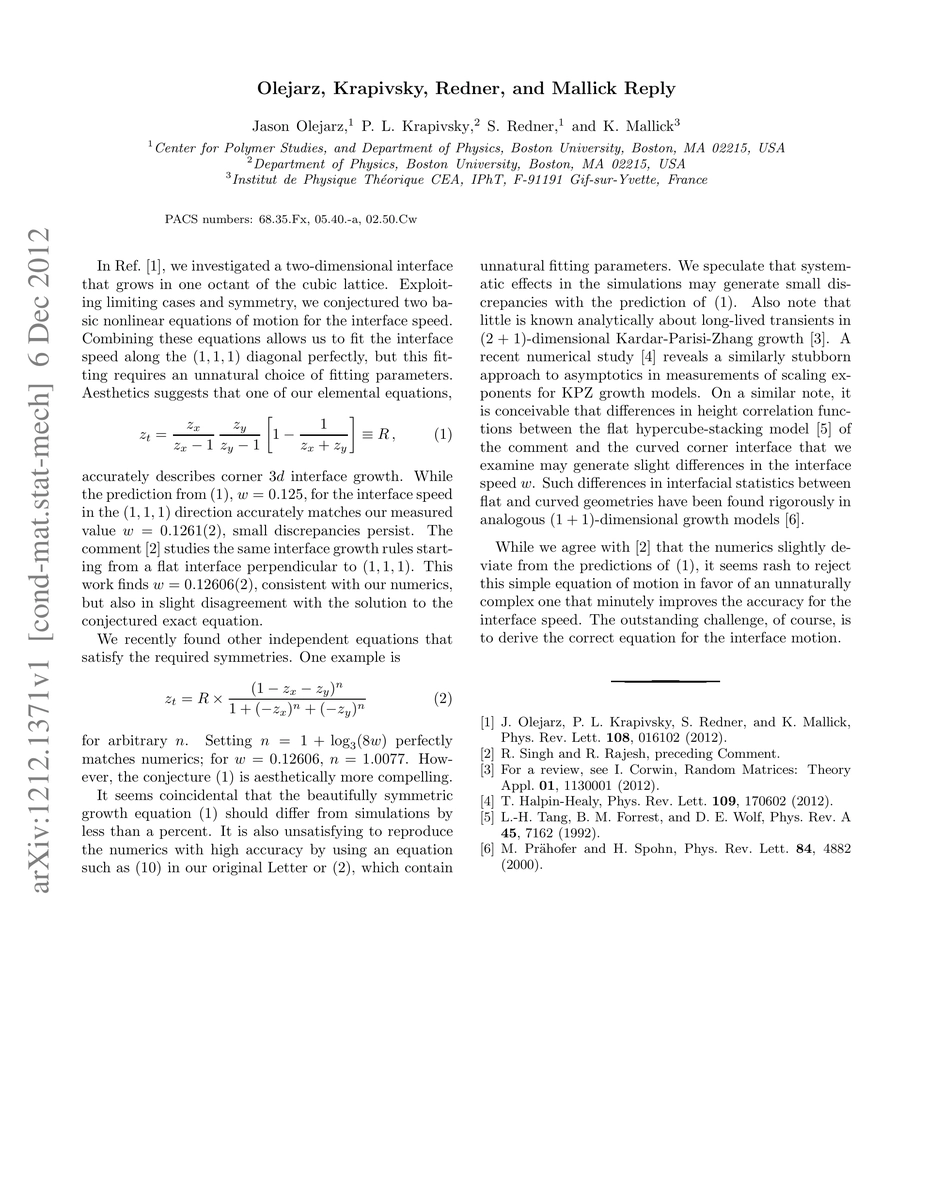 This is a reply to the comment by Singh and Rajesh (arXiv 1212.0946; to appear in PRL) on our paper Olejarz et al., PRL, 108, 016102 (2012) [arxiv 1109.1253]