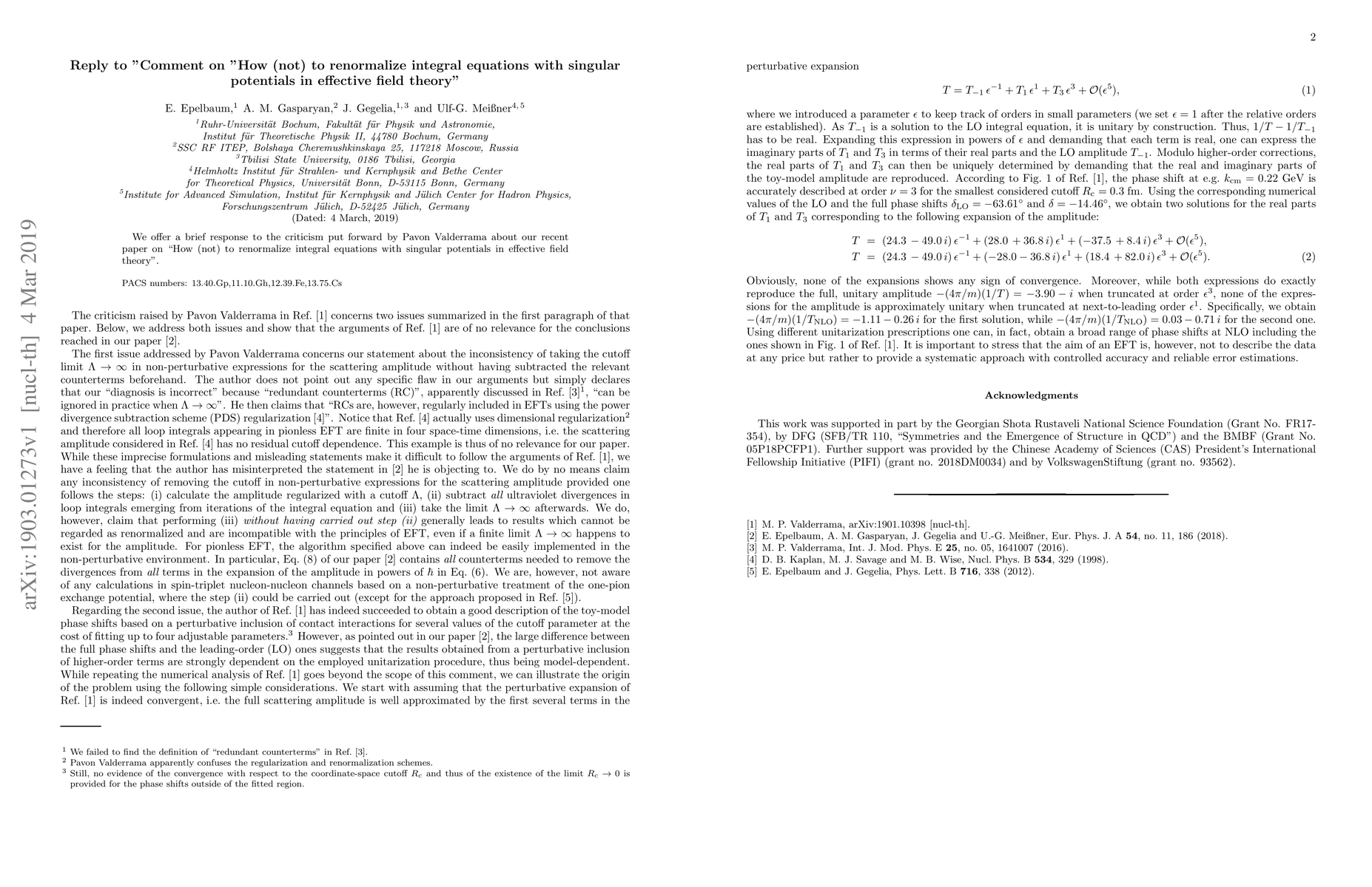 This paper responds to criticism about renormalizing integral equations with singular potentials in effective field theory, addressing concerns about methodological approach and implications for physical applications.
