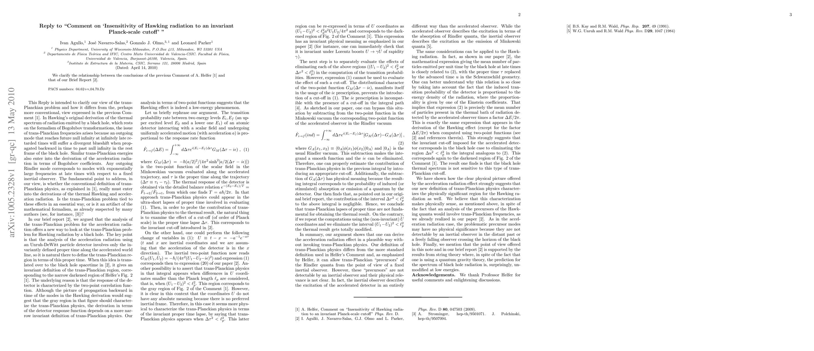 Researchers clarify relationships between two papers on Hawking radiation and invariant Planck-scale cutoffs, addressing concerns about insensitivity of Hawking radiation to a proposed cutoff.