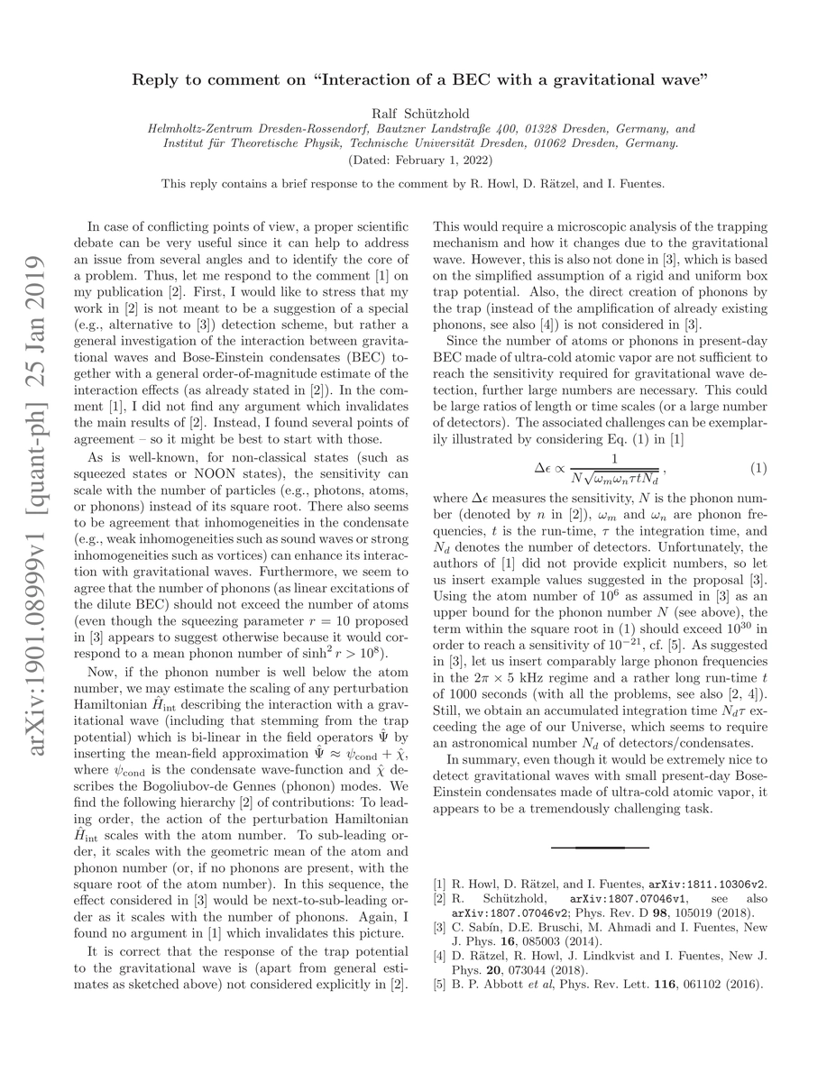 This reply contains a brief response to the comment by R. Howl, D. R\"atzel, and I. Fuentes [arXiv:1811.10306]