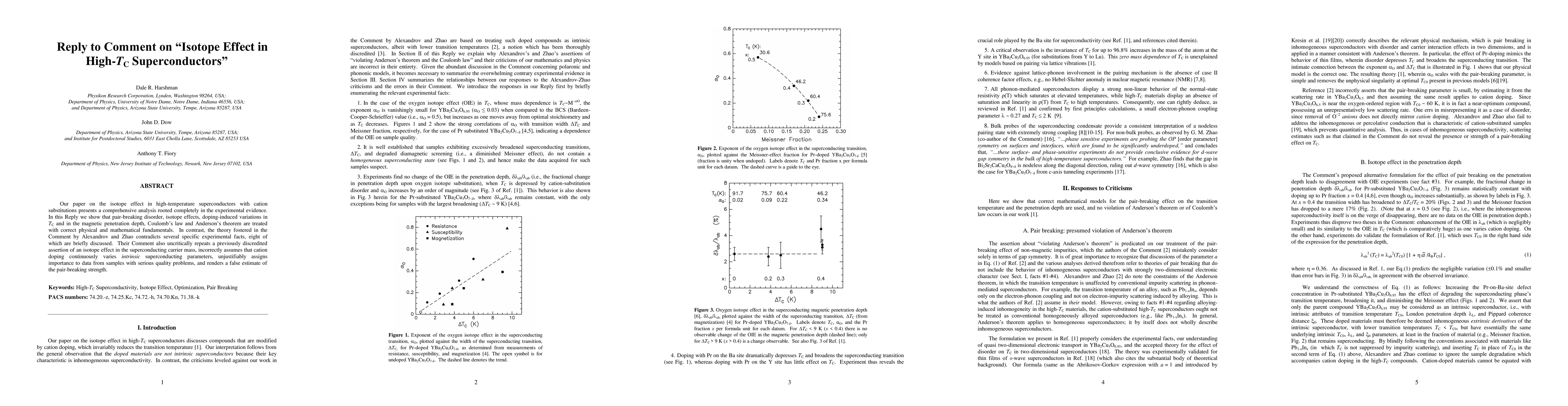 Our paper on the isotope effect in high-temperature superconductors with cation substitutions presents a comprehensive analysis rooted completely in the experimental evidence. In this Reply we show that pair-breaking disorder, isotope effects, doping-induced variations in Tc and in the magnetic penetration depth, Coulomb's law, and Anderson's theorem are treated with correct physical and mathematical fundamentals. In contrast, the theory fostered in the Comment by Alexandrov and Zhao contradicts several specific experimental facts, eight of which are briefly discussed. Their Comment also uncritically repeats a previously discredited assertion of an isotope effect in the superconducting carrier mass, incorrectly assumes that cation doping continuously varies intrinsic superconducting parameters, unjustifiably assigns importance to data from samples with serious quality problems, and renders a false estimate of the pair-breaking strength.