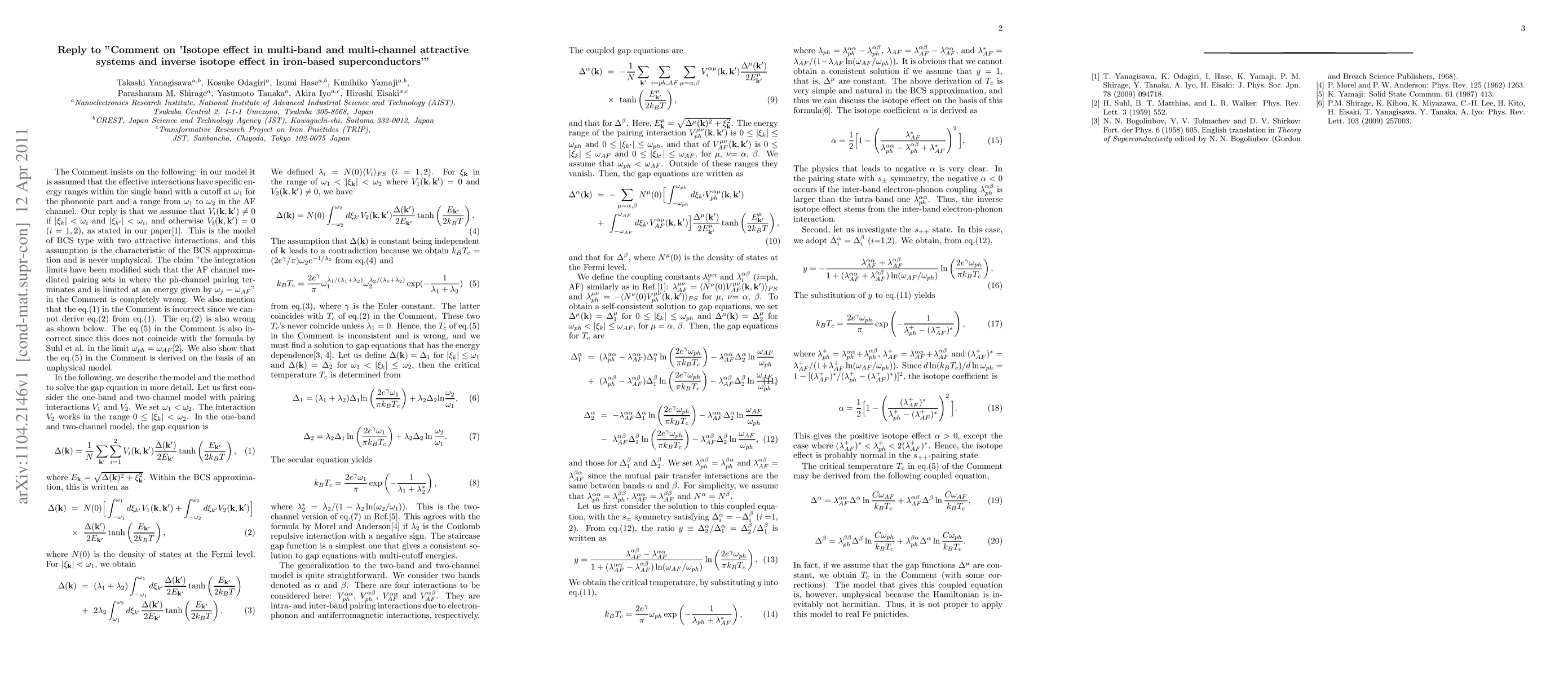 The Comment insists on the following: in our model it is assumed that the effective interactions have specific energy ranges within the single band with a cutoff at \omega_1 for the phononic part and a range from \omega_1 to \omega_2 in the AF channel. Our reply is that we assume that V_i(k,k')\neq 0 if |\xi_k|<\omega_i and |\xi_{k'}|<\omega_i, and otherwise V_i(k,k')= 0 (i=1,2), as stated in our paper. This is the model of BCS type with two attractive interactions, and this assumption is the characteristic of the BCS approximation. The claim "the integration limits have been modified such that the AF channel mediated pairing sets in where the ph-channel pairing terminates and is limited at an energy given by \omega_j=\omega_{AF}" in the Comment is wrong. We describe the model and the method to solve the gap equation in more detail.