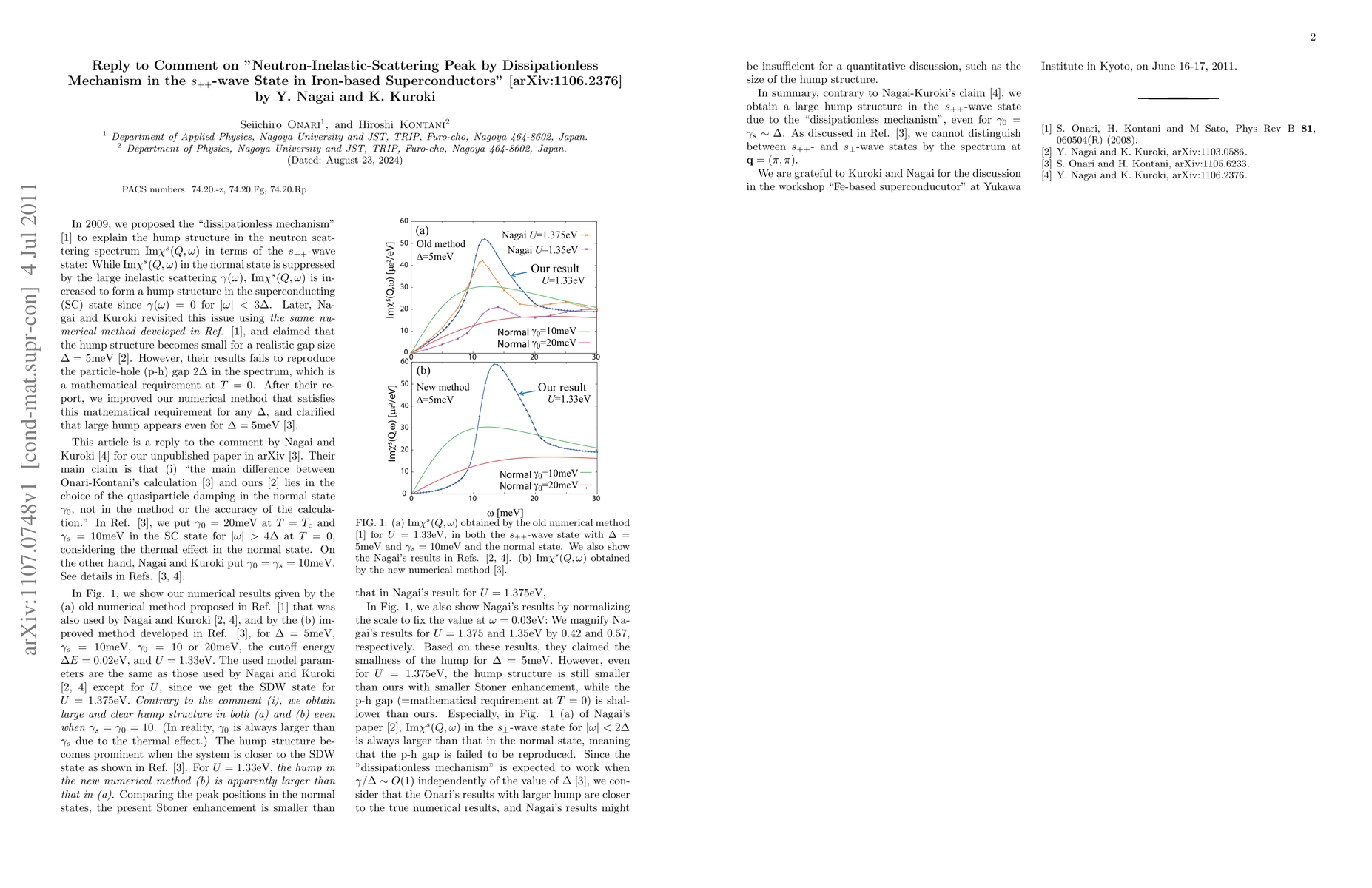 This article is a reply to the comment by Nagai and Kuroki [arXiv:1106.2376] for our unpublished paper in arXiv [arXiv:1105.6233]. Contrary to their claim, we certainly obtain a large hump structure at $q=(\pi,0)$ in the $s_{++}$-wave state in iron pnictides due to the ``dissipationless mechanism'', even when similar parameters used by Nagai and Kuroki are employed.