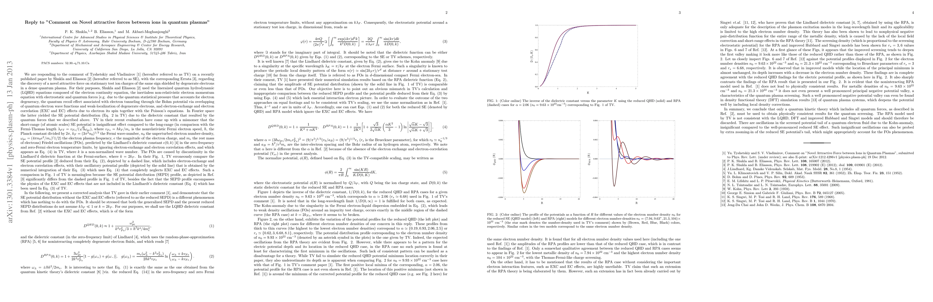 We are responding to the comment of Tyshetskiy and Vladimirov [arXiv:1212.4286] on a recently published paper by Shukla and Eliasson [arXiv:1112.5556], regarding the discovery of a novel attractive force on stationary test ion charges of the same sign shielded by degenerate electrons in a dense quantum plasma.