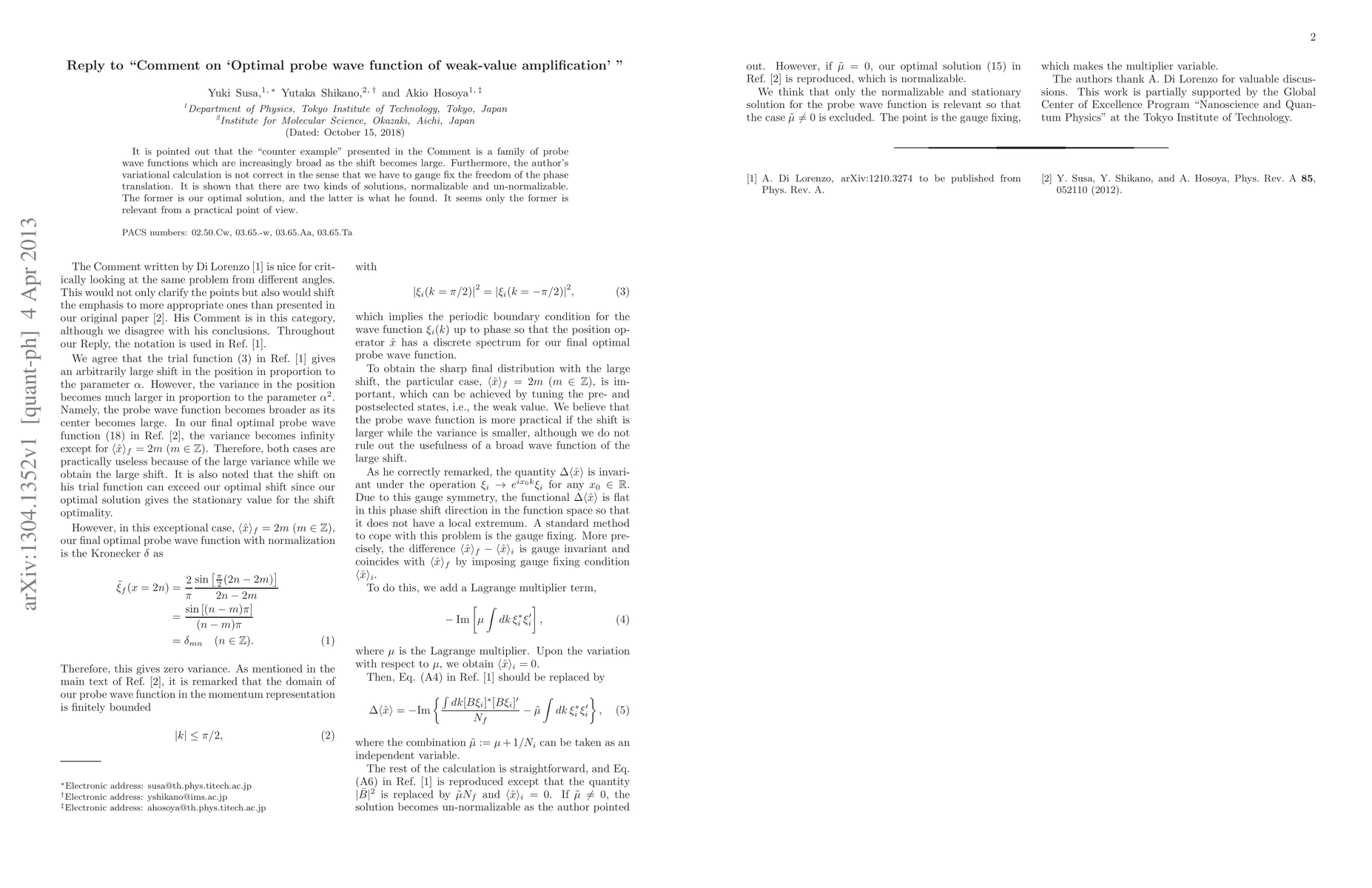 It is pointed out that the "counter example" presented in the Comment is a family of probe wave functions which are increasingly broad as the shift becomes large. Furthermore, the author's variational calculation is not correct in the sense that we have to gauge fix the freedom of the phase translation. It is shown that there are two kinds of solutions, normalizable and un-normalizable. The former is our optimal solution, and the latter is what he found. It seems only the former is relevant from a practical point of view.