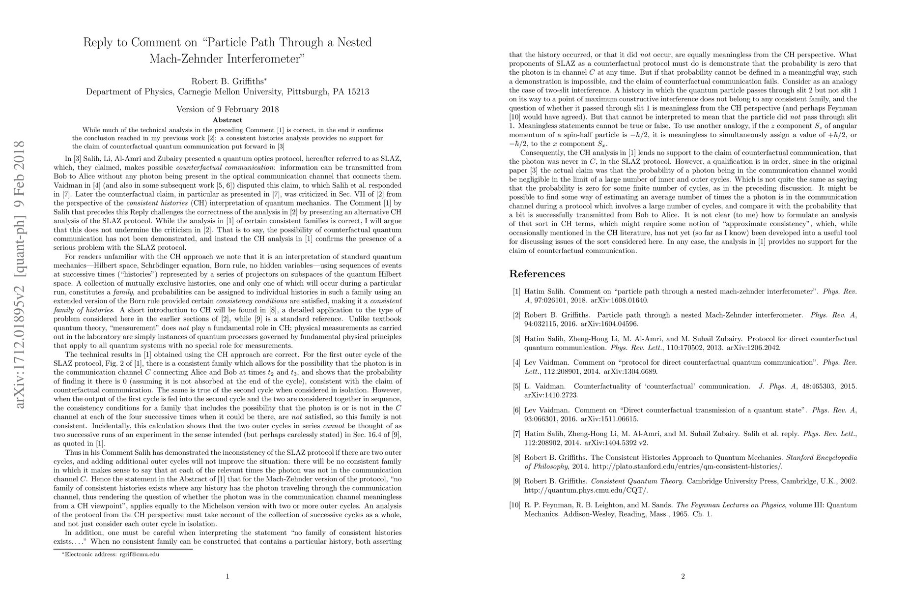 The study verifies the author's previous work, providing no evidence for non-locally correlated particles in a nested Mach-Zehnder interferometer.