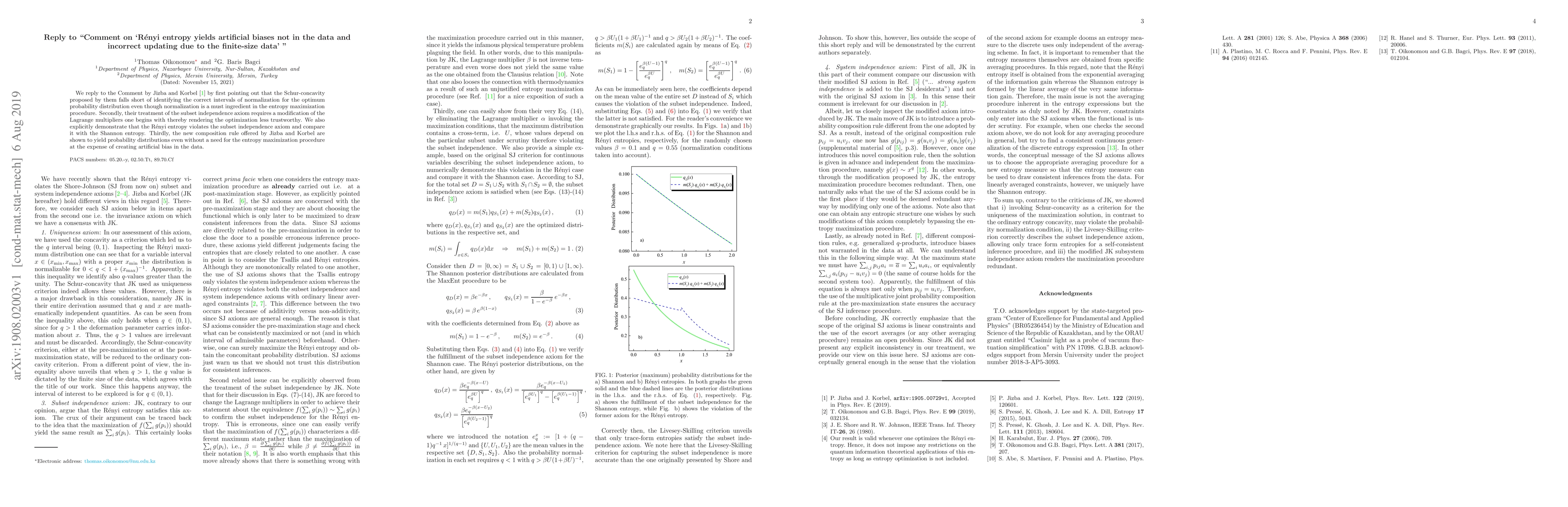 Researchers respond to criticism of Rényi entropy, arguing that Schur-concavity does not ensure correct normalization and subset independence axiom is violated in this method.