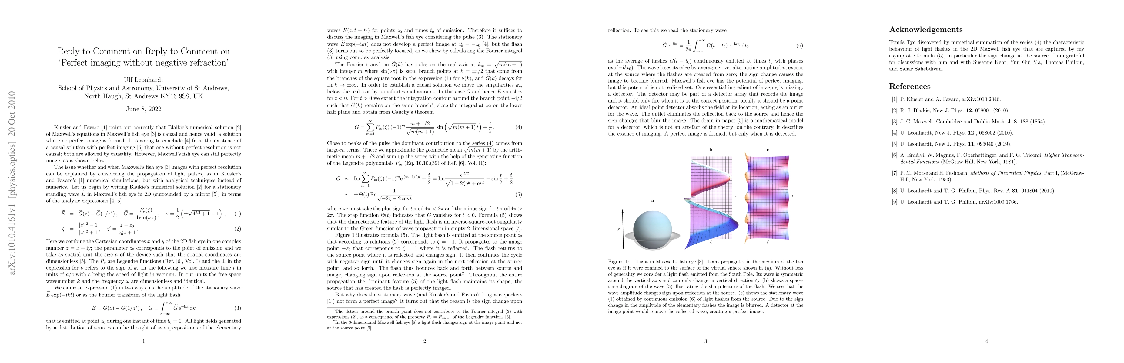 Kinsler and Favaro point out correctly that Blaikie's numerical solution of Maxwell's equations in Maxwell's fish eye is causal and hence valid, a solution where no perfect image is formed. It is wrong to conclude from the existence of a causal solution with perfect imaging that one without perfect resolution is not causal; both are allowed by causality. However, Maxwell's fish eye can still perfectly image, as the Reply shows.
