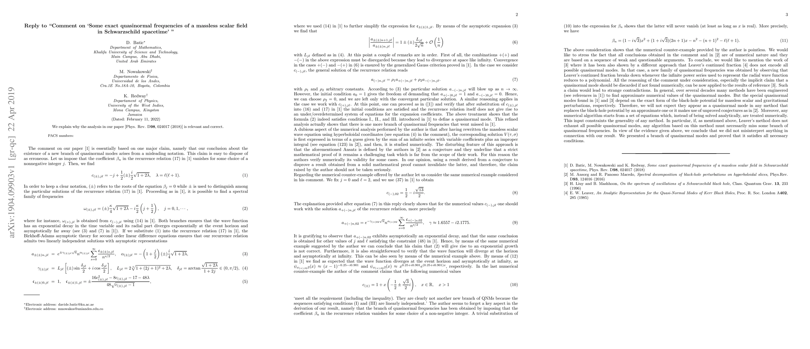 This paper responds to critiques of a previous study on quasinormal frequencies of a massless scalar field in Schwarzschild spacetime, defending the methodology and findings of the original research. The authors clarify why their analysis remains valid and significant.