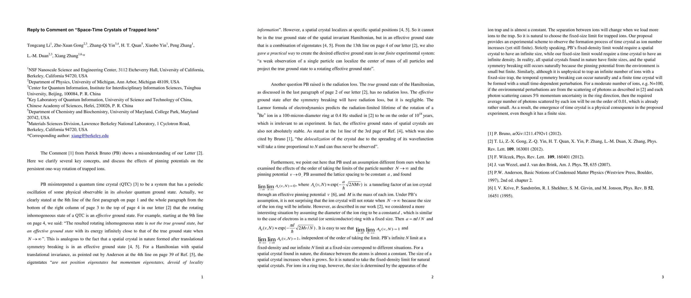 This reply addresses and clarifies points raised by Patrick Bruno regarding our previous study on space-time crystals of trapped ions, aiming to resolve any misunderstandings and provide additional context.