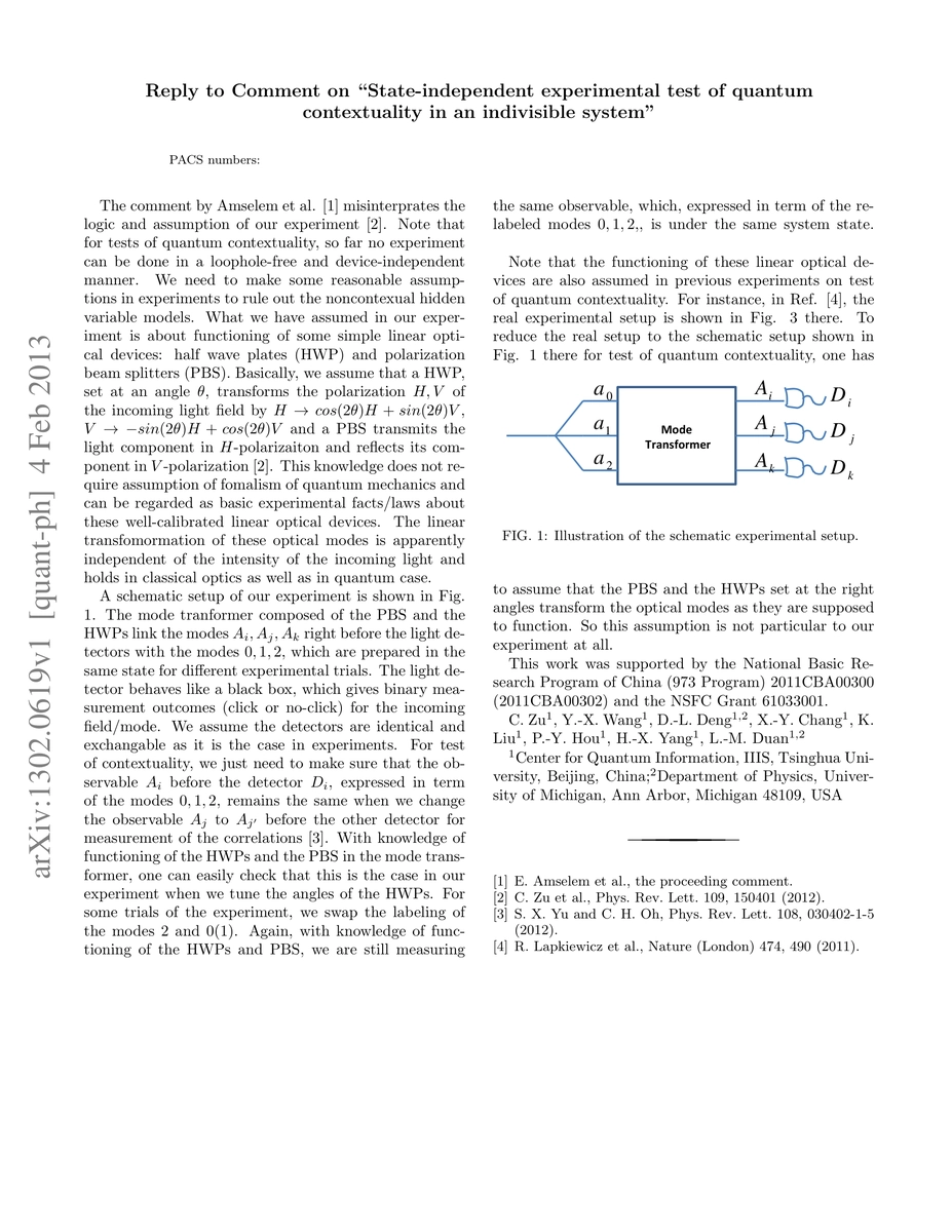 This paper addresses and responds to a critique from E. Amselem et al. regarding the authors' previous work on a state-independent experimental test of quantum contextuality in an indivisible system, defending the methodology and conclusions of the original study.
