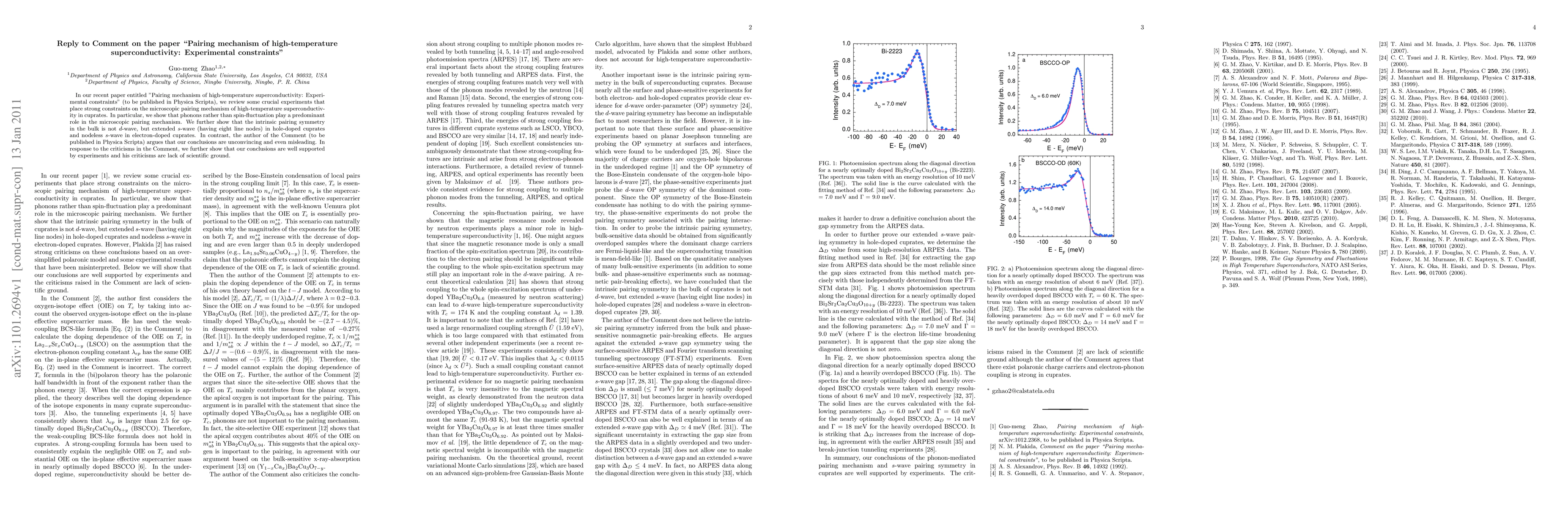 In our recent paper entitled "Pairing mechanism of high-temperature superconductivity: Experimental constraints" (to be published in Physica Scripta, arXiv:1012.2368), we review some crucial experiments that place strong constraints on the microscopic pairing mechanism of high-temperature superconductivity in cuprates. In particular, we show that phonons rather than spin-fluctuation play a predominant role in the microscopic pairing mechanism. We further show that the intrinsic pairing symmetry in the bulk is not d-wave, but extended s-wave (having eight line nodes) in hole-doped cuprates and nodeless s-wave in electron-doped cuprates. In contrast, the author of the Comment (to be published in Physica Scripta) argues that our conclusions are unconvincing and even misleading. In response to the criticisms in the Comment, we further show that our conclusions are well supported by experiments and his criticisms are lack of scientific ground.