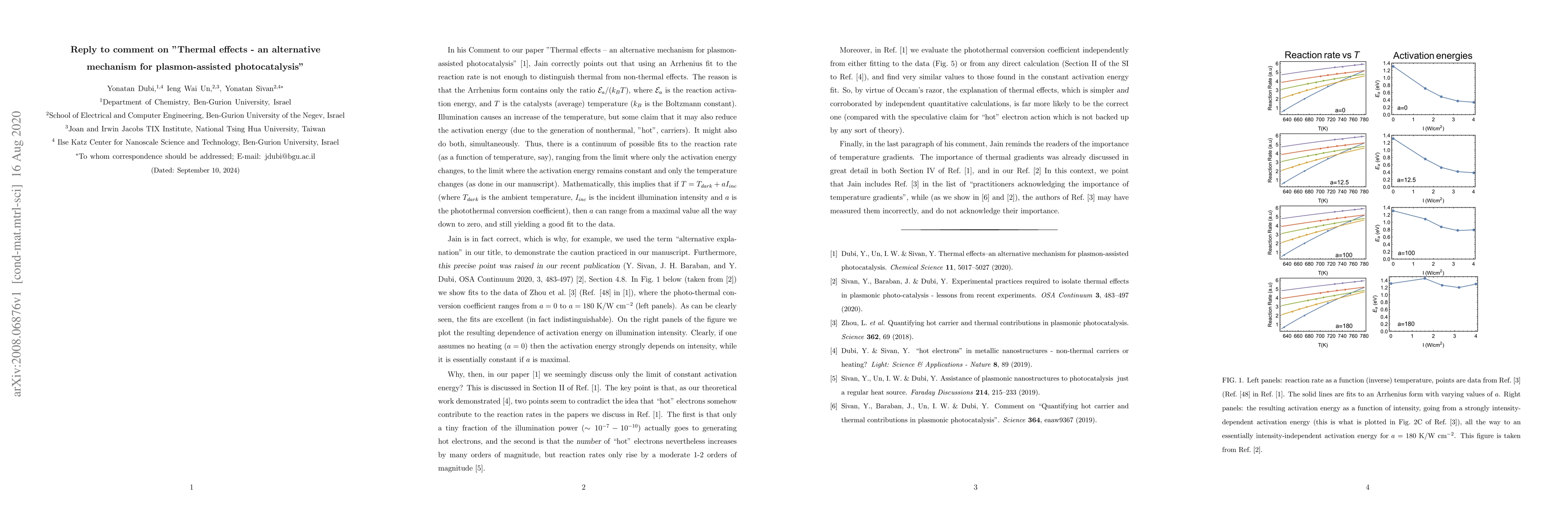 Reply to comment on "Thermal effects -- an alternative mechanism for plasmon-assisted photocatalysis" by P. Jain [Chem. Sci., 2020, 11, DOI: 10.1039/D0SC02914A]