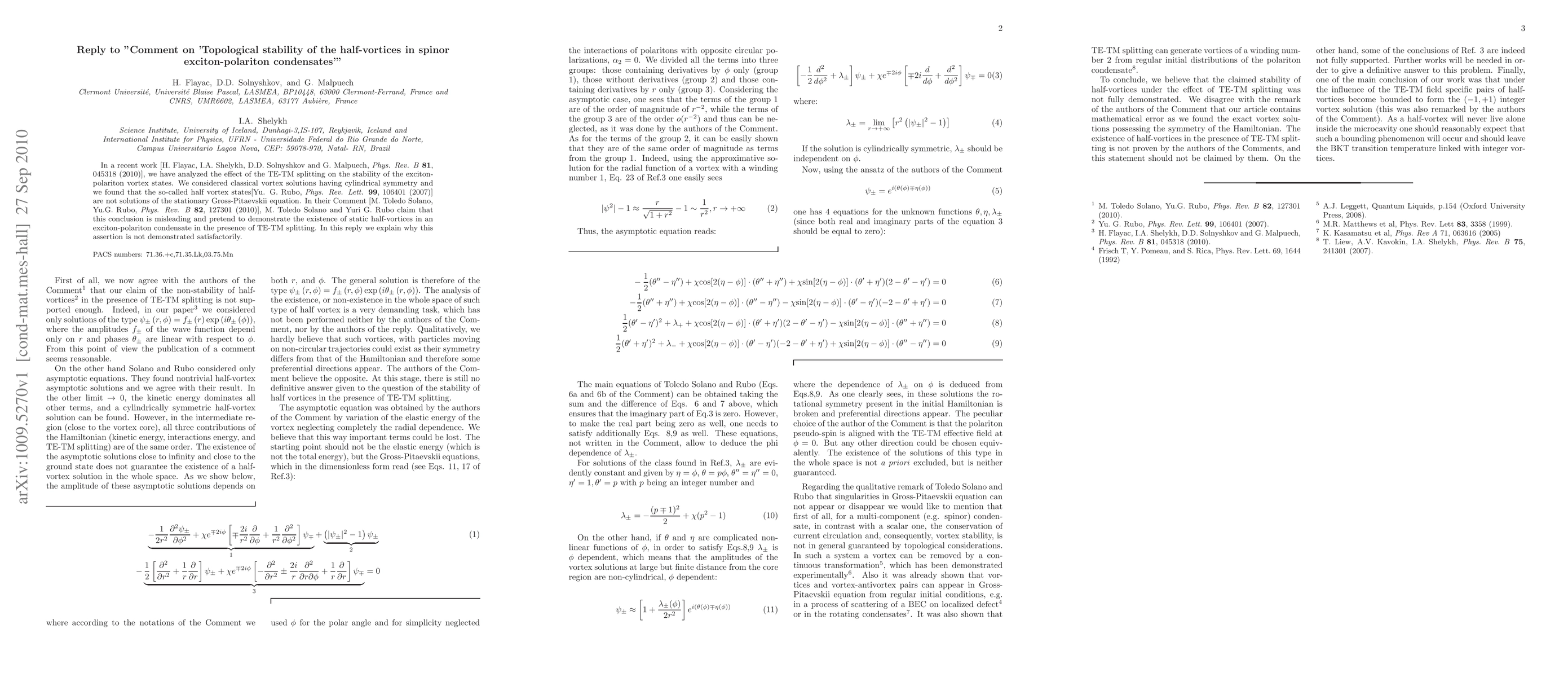 This paper refutes claims by Toledo Solano and Rubo that half-vortex states exist in exciton-polariton condensates, asserting their analysis shows these states do not satisfy the stationary Gross-Pitaevskii equation, despite the challengers' arguments.