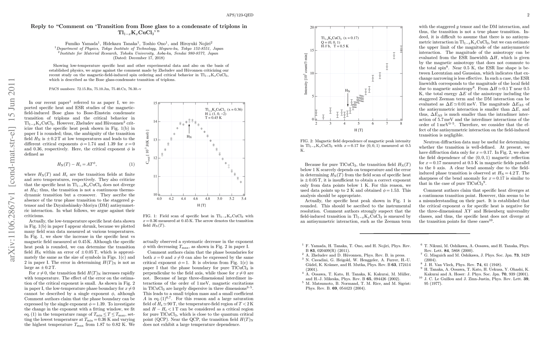 This paper refutes criticisms by Zheludev and Hüvonnen regarding the Bose glass-to-triplon condensate transition in Tl$_{1-x}$K$_x$CuCl$_3$, using low-temperature specific heat data and established physics to support the magnetic-field-induced spin ordering and critical behavior findings of the previous study.