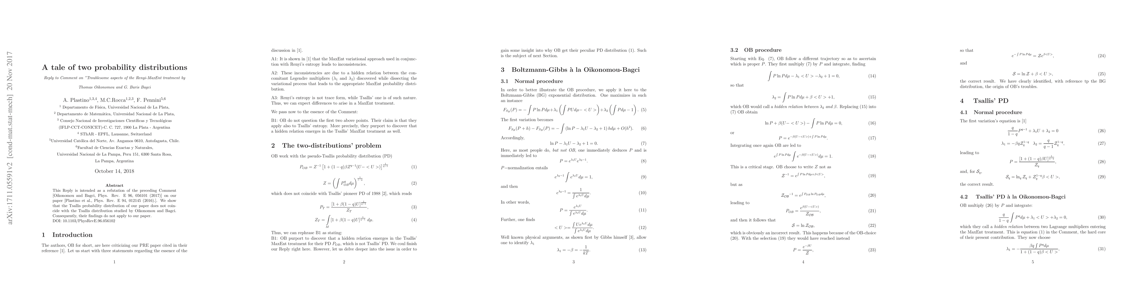 This reply refutes a preceding comment by Oikonomou and Bagci, asserting that the Tsallis probability distribution in the authors' paper differs from that studied by the critics, thus invalidating their findings in relation to the authors' work.