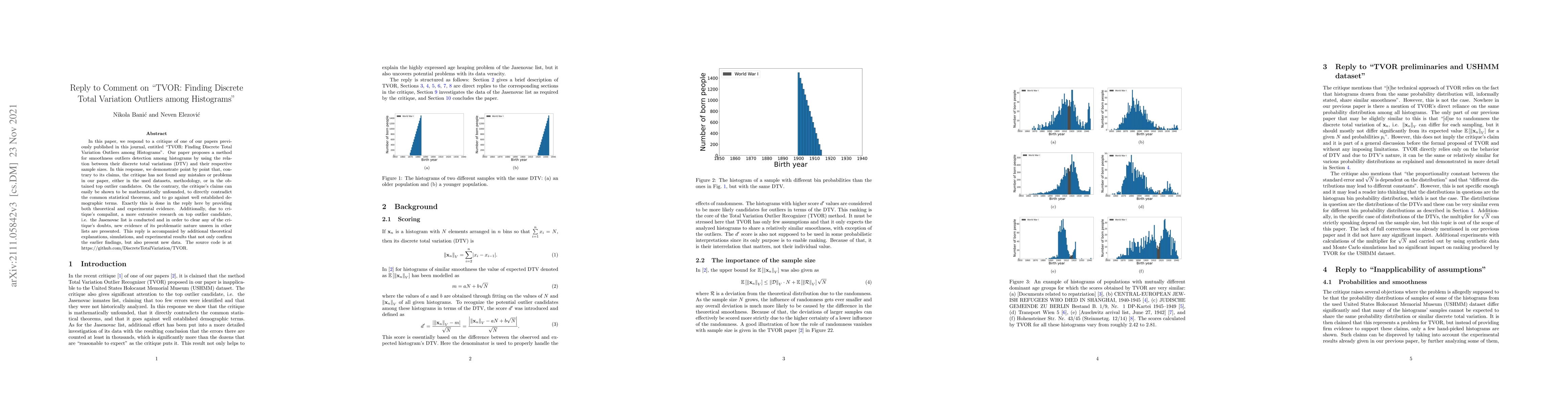 In this paper, we respond to a critique of one of our papers previously published in this journal, entitled "TVOR: Finding Discrete Total Variation Outliers among Histograms". Our paper proposes a method for smoothness outliers detection among histograms by using the relation between their discrete total variations (DTV) and their respective sample sizes. In this response, we demonstrate point by point that, contrary to its claims, the critique has not found any mistakes or problems in our paper, either in the used datasets, methodology, or in the obtained top outlier candidates. On the contrary, the critique's claims can easily be shown to be mathematically unfounded, to directly contradict the common statistical theorems, and to go against well established demographic terms. Exactly this is done in the reply here by providing both theoretical and experimental evidence. Additionally, due to critique's complaint, a more extensive research on top outlier candidate, i.e. the Jasenovac list is conducted and in order to clear any of the critique's doubts, new evidence of its problematic nature unseen in other lists are presented. This reply is accompanied by additional theoretical explanations, simulations, and experimental results that not only confirm the earlier findings, but also present new data. The source code is at https://github.com/DiscreteTotalVariation/TVOR.