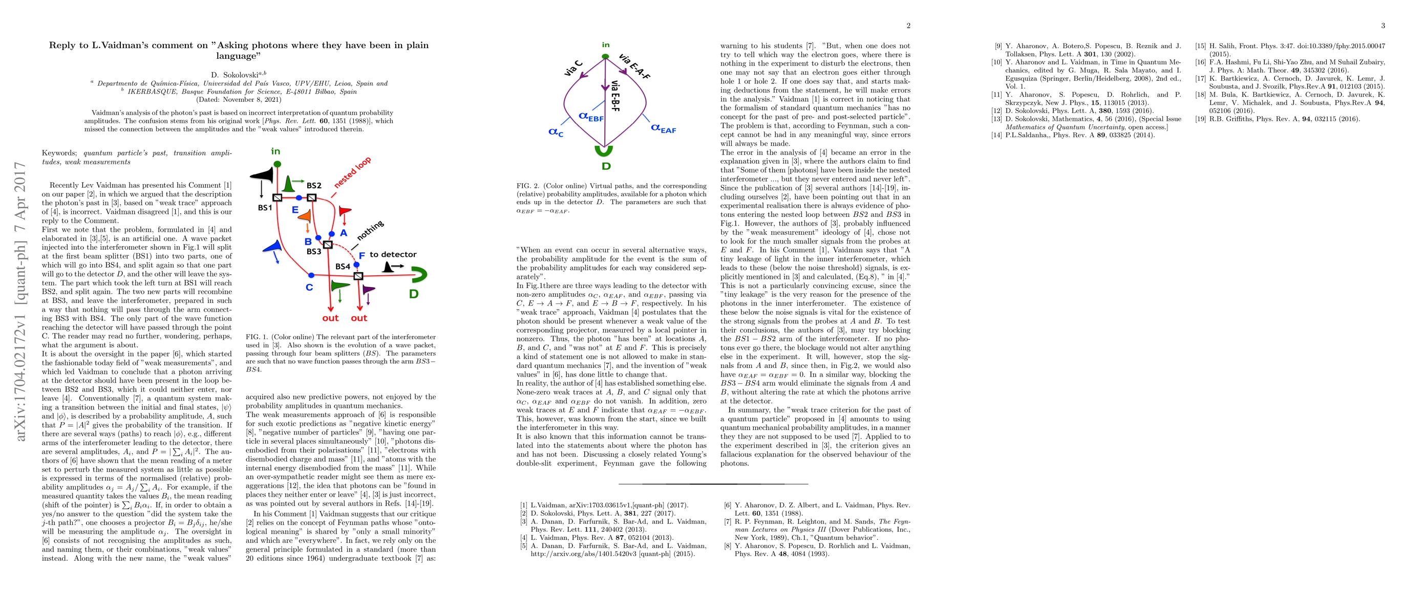 The paper refutes L.Vaidman's interpretation of photon's past, arguing it's based on a misunderstanding of quantum probability amplitudes. It clarifies the connection between these amplitudes and 'weak values' first introduced by Vaidman in 1988.