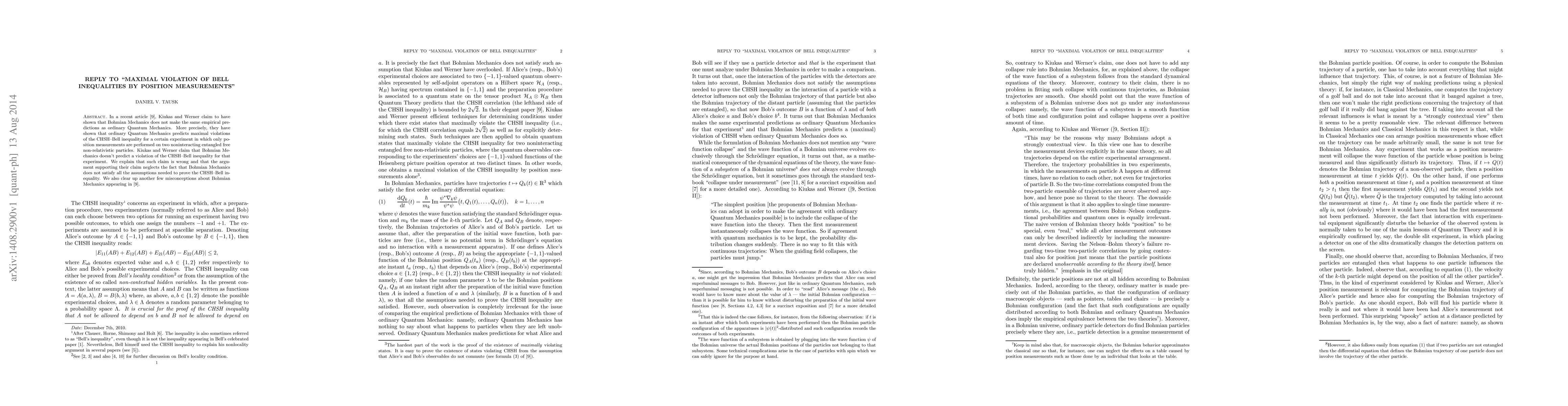 This paper refutes Kiukas and Werner's claim that Bohmian Mechanics fails to predict maximal violations of the CHSH-Bell inequality for position measurements on entangled particles. It clarifies that their argument overlooks key assumptions in Bohmian Mechanics, correcting misconceptions about the theory.