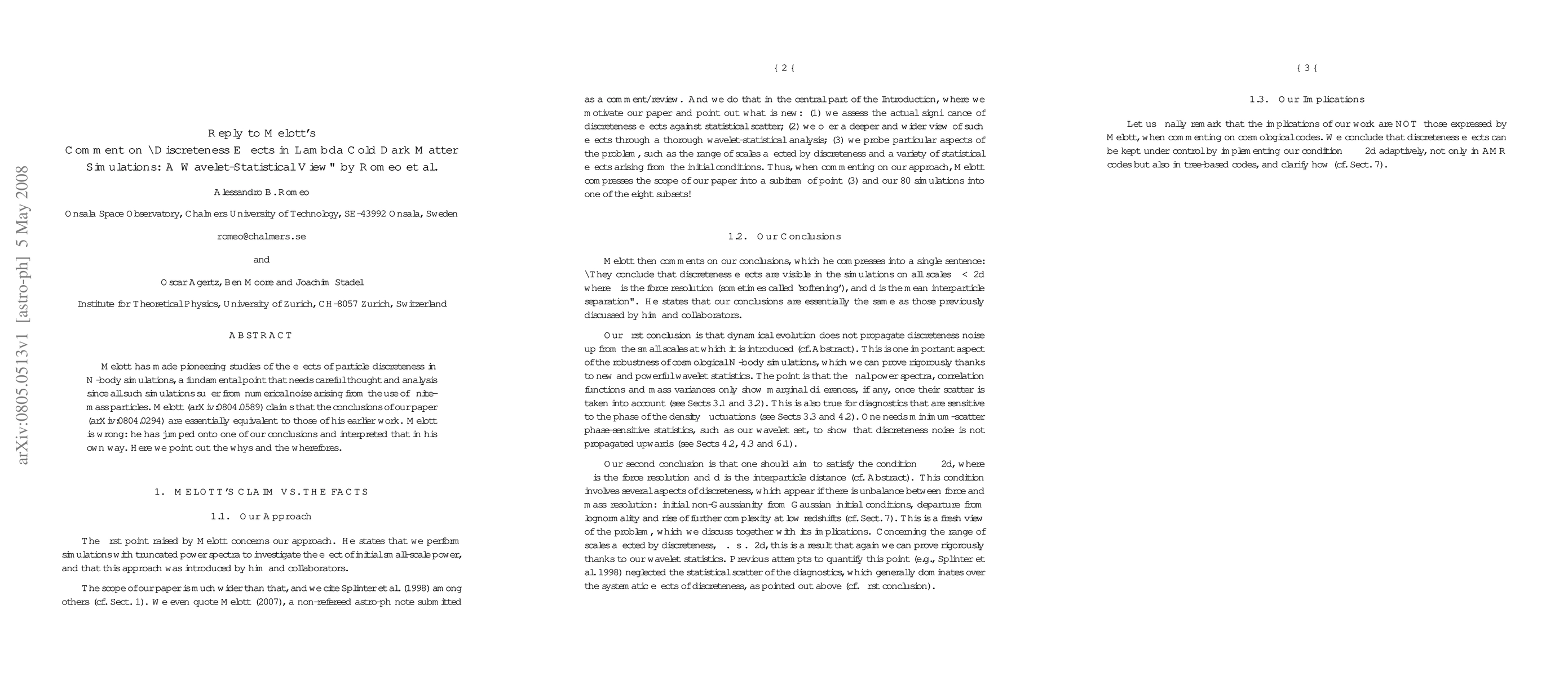 Melott has made pioneering studies of the effects of particle discreteness in N-body simulations, a fundamental point that needs careful thought and analysis since all such simulations suffer from numerical noise arising from the use of finite-mass particles. Melott (arXiv:0804.0589) claims that the conclusions of our paper (arXiv:0804.0294) are essentially equivalent to those of his earlier work. Melott is wrong: he has jumped onto one of our conclusions and interpreted that in his own way. Here we point out the whys and the wherefores.