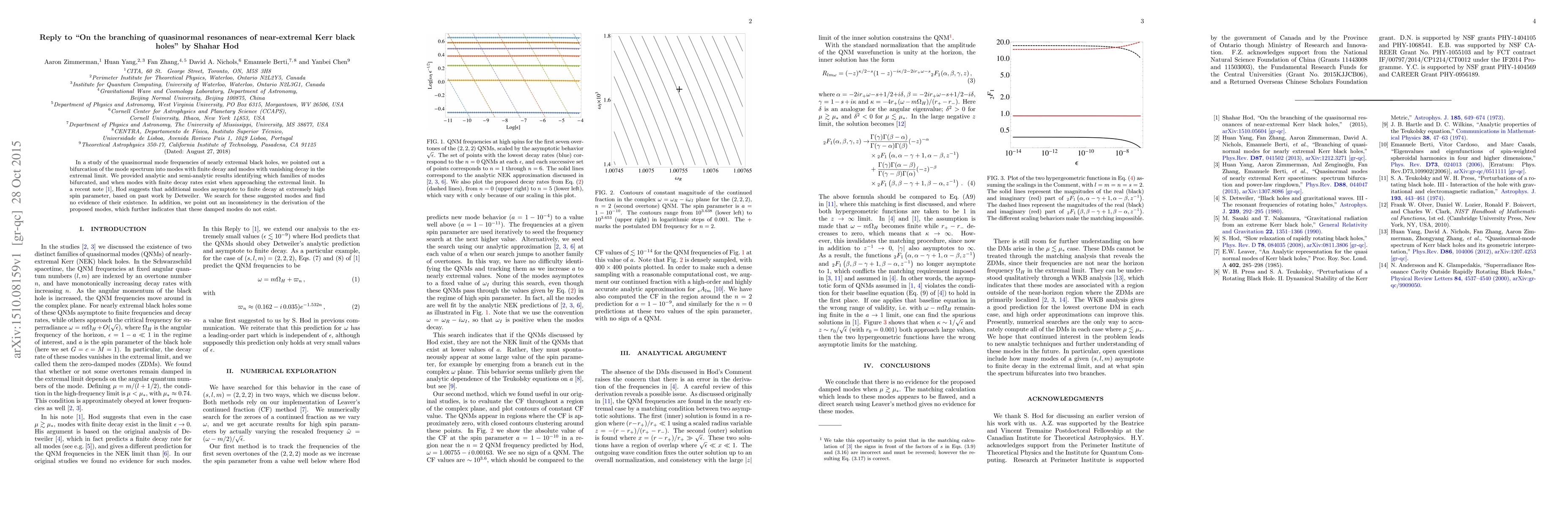 In a study of the quasinormal mode frequencies of nearly extremal black holes, we pointed out a bifurcation of the mode spectrum into modes with finite decay and modes with vanishing decay in the extremal limit. We provided analytic and semi-analytic results identifying which families of modes bifurcated, and when modes with finite decay rates exist when approaching the extremal limit. In a recent note (arXiv:1510.05604), Hod suggests that additional modes asymptote to finite decay at extremely high spin parameter, based on past work by Detweiler. We search for these suggested modes and find no evidence of their existence. In addition, we point out an inconsistency in the derivation of the proposed modes, which further indicates that these damped modes do not exist.