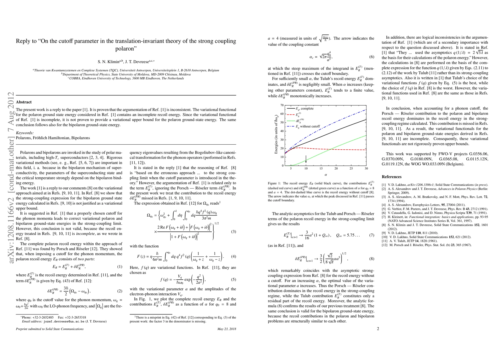 The present work is a reply to the paper [1]. It is proven that the argumentation of Ref. [1] is inconsistent. The variational functional for the polaron ground state energy considered in Ref. [1] contains an incomplete recoil energy. Since the variational functional of Ref. [1] is incomplete, it is not proven to provide a variational upper bound for the polaron ground-state energy. The same conclusion follows also for the bipolaron ground-state energy.
