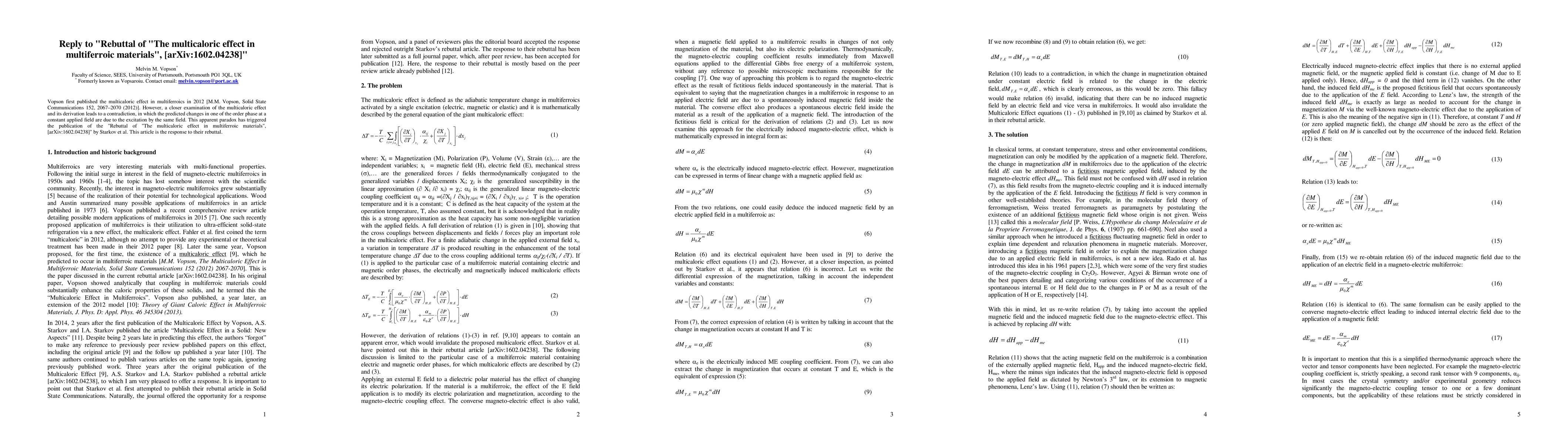 Vopson first published the multicaloric effect in multiferroics in 2012. However, a closer examination of the multicaloric effect and its derivation leads to a contradiction, in which the predicted changes in one of the order phase at a constant applied field are due to the excitation by the same field. This apparent paradox has triggered the publication of Rebuttal of The multicaloric effect in multiferroic materials by Starkov et al. This article is the response to their rebuttal.