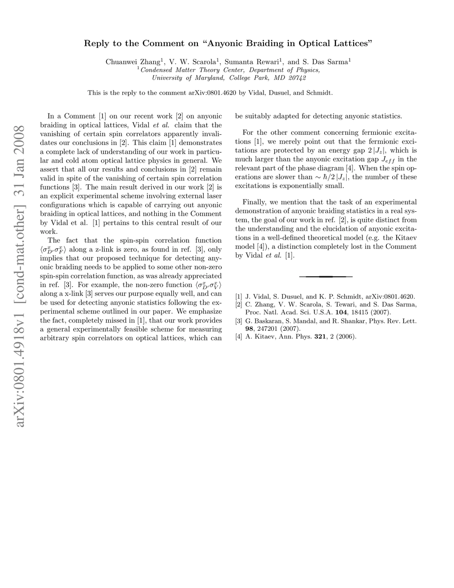 This is the reply to the comment arXiv:0801.4620 by Vidal, Dusuel, and Schmidt.