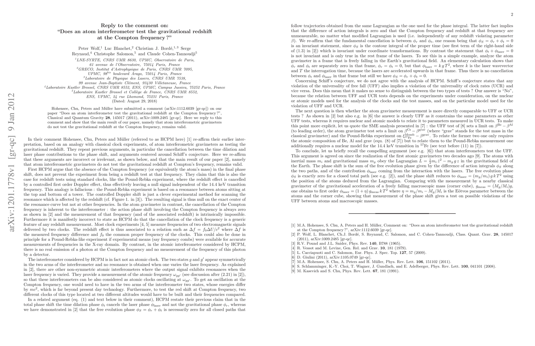 A research paper confirms that atom interferometers do not test gravitational redshift at the Compton frequency, a finding previously challenged by another study.