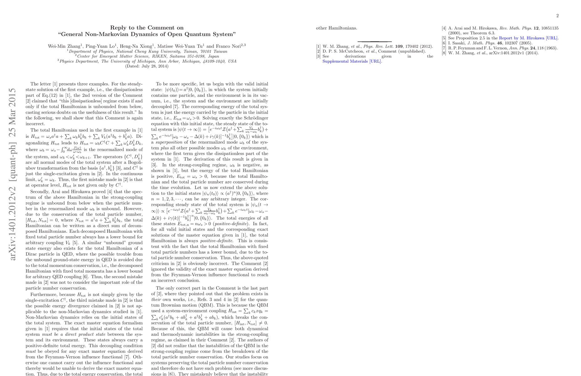 This is the reply to the 2nd version of the comment, [arXiv.1312.5286v2], by McCutcheon {\it et al.} on our paper [PRL 109, 170402 (2012)]. Our letter presents three examples. For the steady-state solution of the first example, i.e., the dissipationless part of Eq.(12) in the PRL, the 2nd version of the Comment claimed that "this [dissipationless] regime exists if and only if the total Hamiltonian is unbounded from below, casting serious doubts on the usefulness of this result." In this reply, we show again that the 2nd version of the Comment is also incorrect.