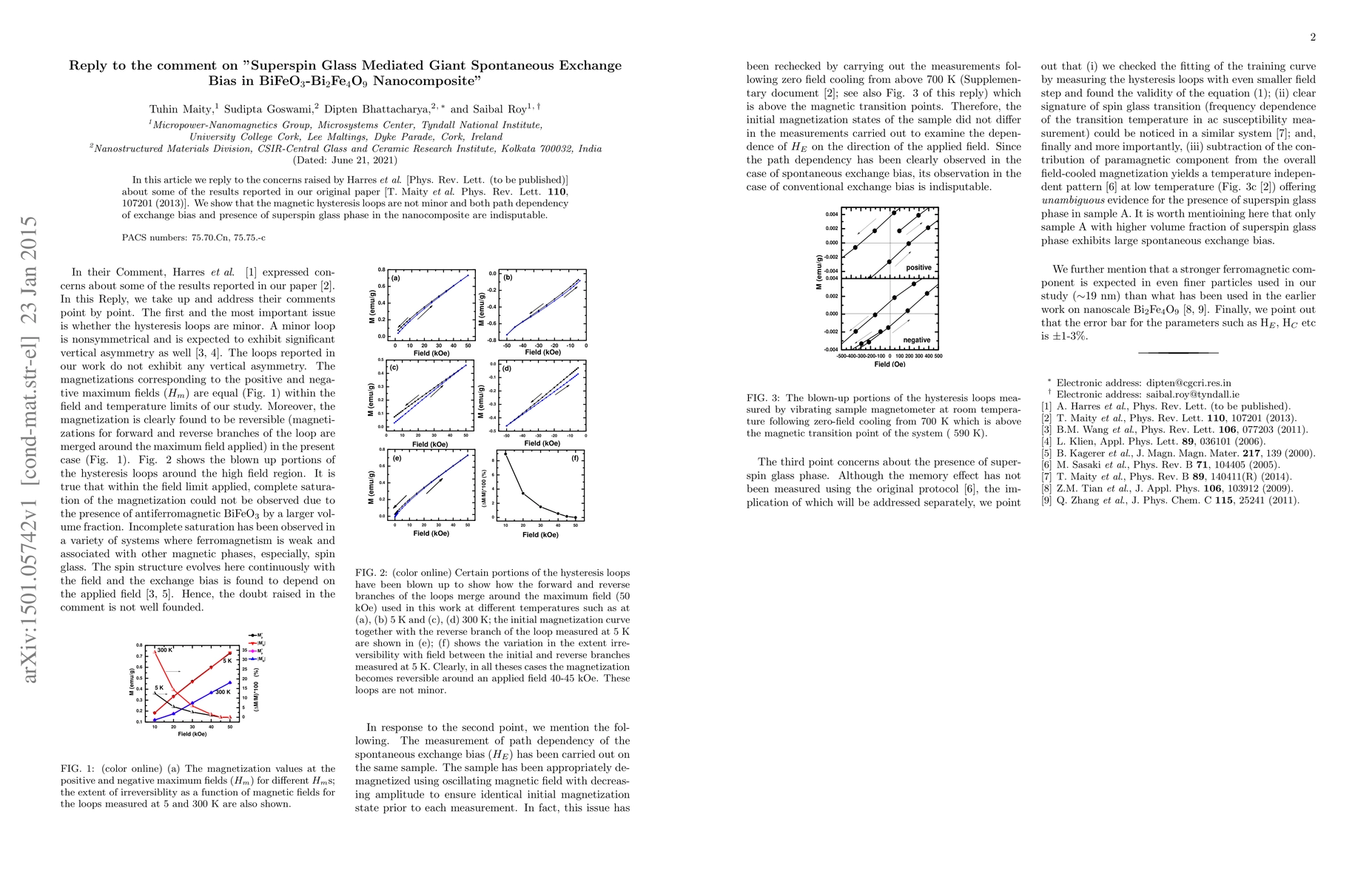 In this article we reply to the concerns raised by Harres $\textit{et al}$. [Phys. Rev. Lett. (to be published)] about some of the results reported in our original paper [T. Maity $\textit{et al}$. Phys. Rev. Lett. $\textbf{110}$, 107201 (2013)]. We show that the magnetic hysteresis loops are not minor and both path dependency of exchange bias and presence of superspin glass phase in the nanocomposite are indisputable.