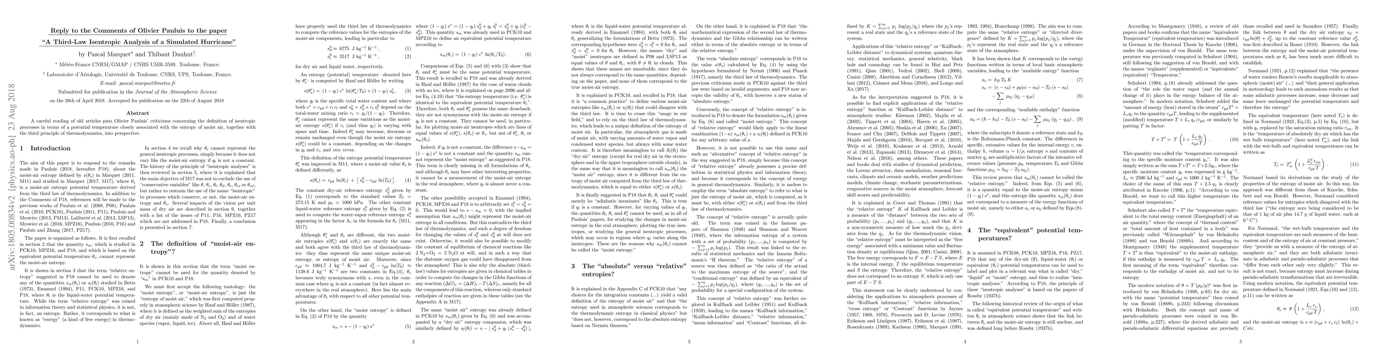 A careful reading of old articles puts Olivier Pauluis' criticisms concerning the definition of isentropic processes in terms of a potential temperature closely associated with the entropy of moist air, together with the third principle of thermodynamics, into perspective.