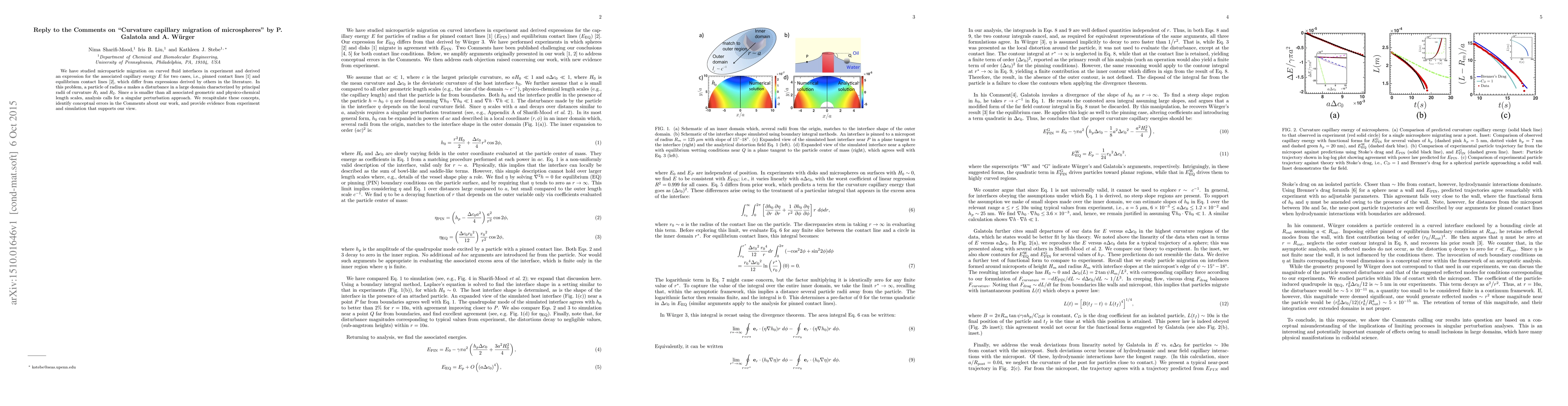 The paper responds to previous comments, defending the authors' derived capillary energy expression for microparticle migration on curved fluid interfaces. They support their view with experimental and simulation evidence, correcting perceived errors in the previous comments.