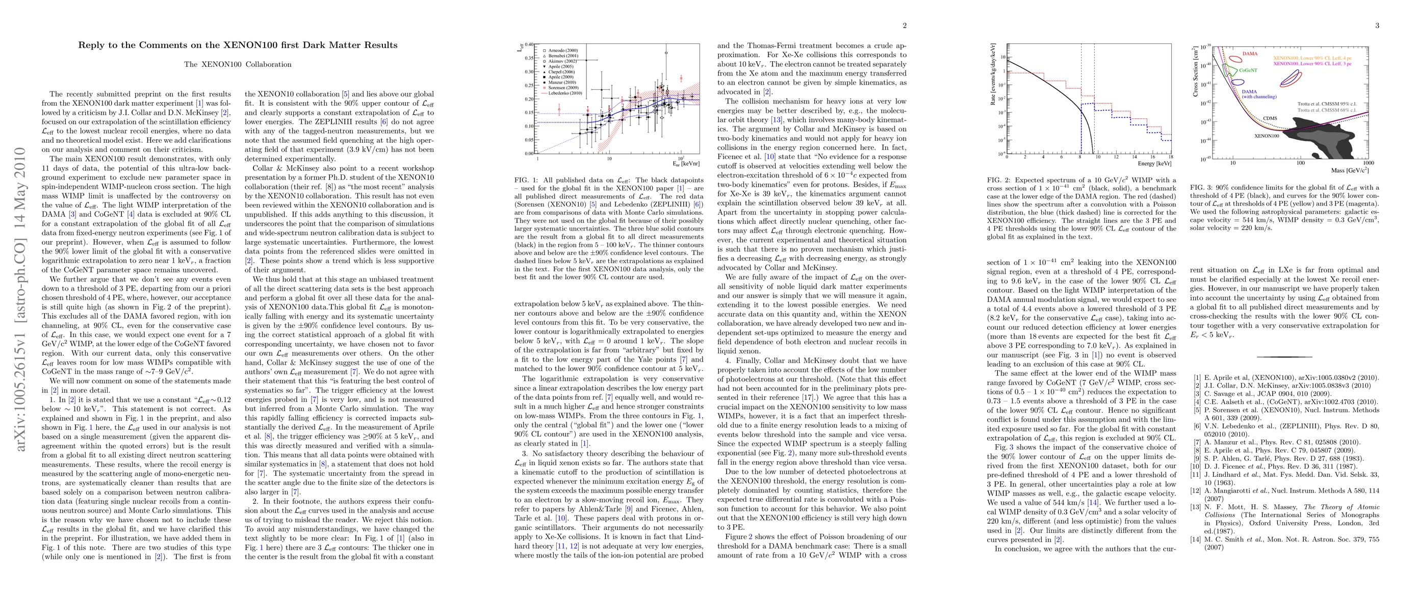 The recently submitted preprint on the first results from the XENON100 dark matter experiment (arxiv:1005.0380) was followed by a criticism by J.I. Collar and D.N. McKinsey (arxiv:1005.0838), focused on our extrapolation of the scintillation efficiency L_eff to the lowest nuclear recoil energies, where no data and no theoretical model exist. Here we add clarifications on our analysis and comment on their criticism.
