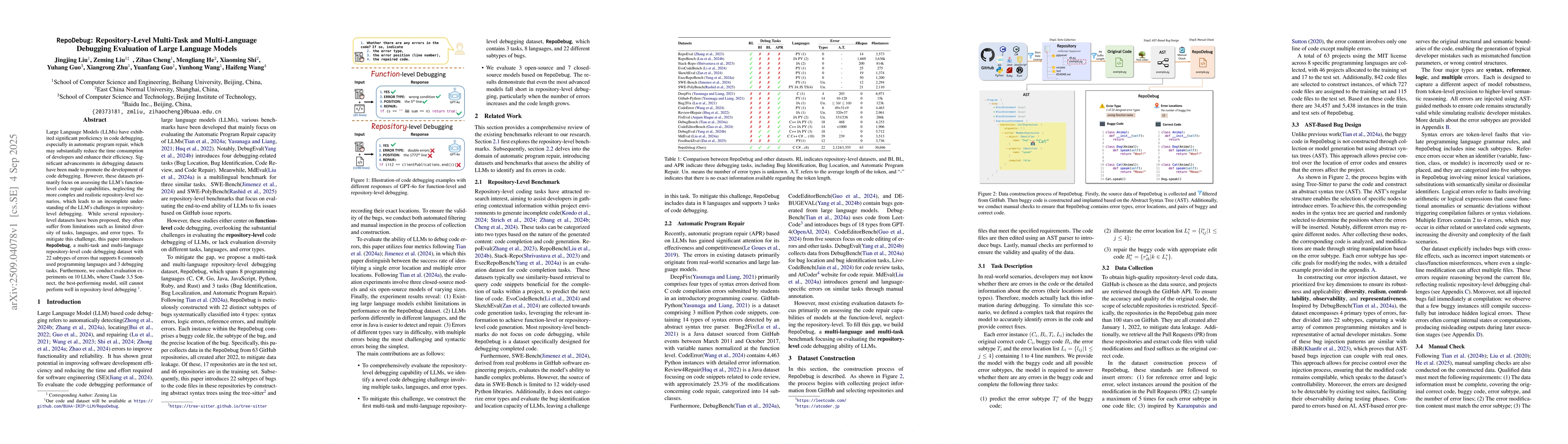 Large Language Models (LLMs) have exhibited significant proficiency in code debugging, especially in automatic program repair, which may substantially reduce the time consumption of developers and enhance their efficiency. Significant advancements in debugging datasets have been made to promote the development of code debugging. However, these datasets primarily focus on assessing the LLM's function-level code repair capabilities, neglecting the more complex and realistic repository-level scenarios, which leads to an incomplete understanding of the LLM's challenges in repository-level debugging. While several repository-level datasets have been proposed, they often suffer from limitations such as limited diversity of tasks, languages, and error types. To mitigate this challenge, this paper introduces RepoDebug, a multi-task and multi-language repository-level code debugging dataset with 22 subtypes of errors that supports 8 commonly used programming languages and 3 debugging tasks. Furthermore, we conduct evaluation experiments on 10 LLMs, where Claude 3.5 Sonnect, the best-performing model, still cannot perform well in repository-level debugging.