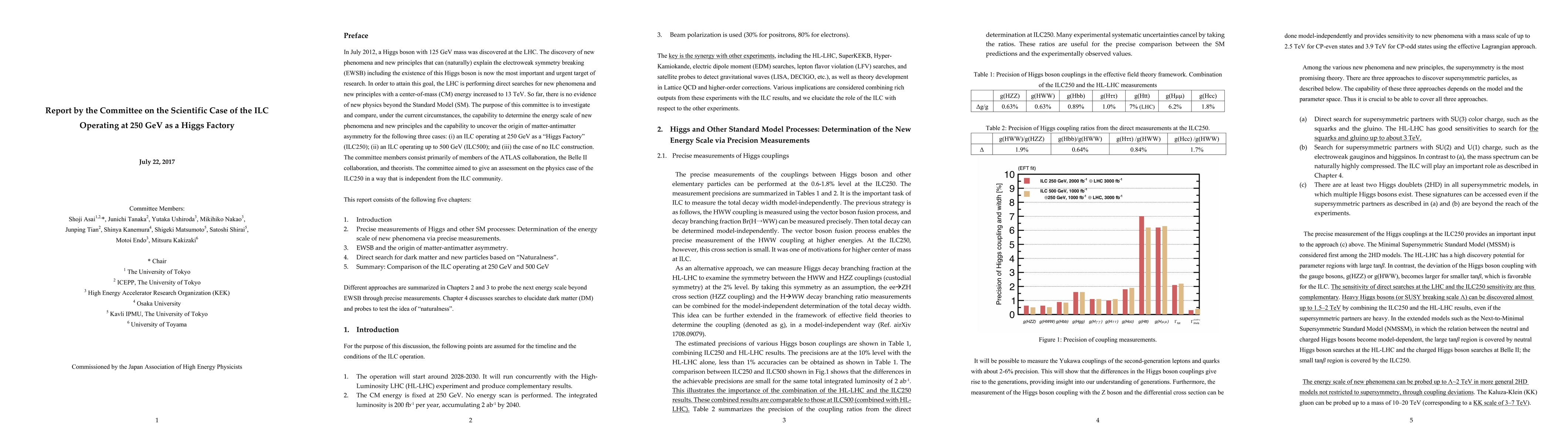 This document is the final report by the Committee on the Scientific Case of the ILC Operating at 250 GeV as a Higgs Factory. This committee was commissioned by the Japan Association of High Energy Physicists. The purpose of this committee is to investigate and compare the capability to determine the energy scale of new phenomena and new principles and the capability to uncover the origin of matter-antimatter asymmetry.